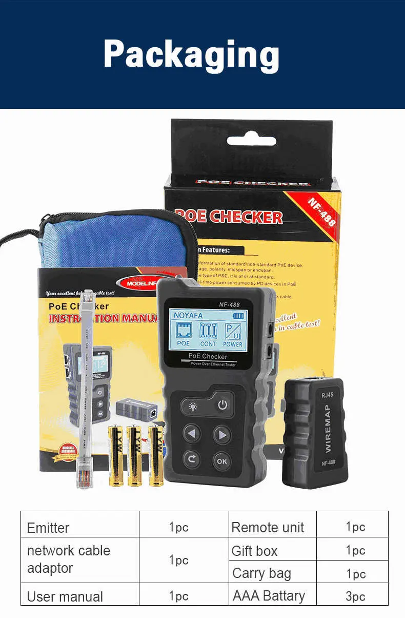 NOYAFA NF488 ЖК-дисплей сетевой PoE Checker RJ45 цифровой Ethernet CAT5 CAT6 Lan тестер детектор кабель PoE переключатель тестер сетевые инструменты