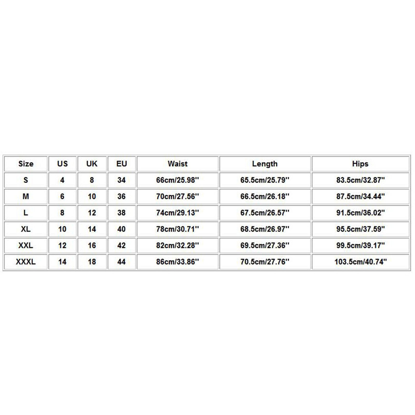 Размеры | США | UK | ЕС | Талия | Длина | Бедра |