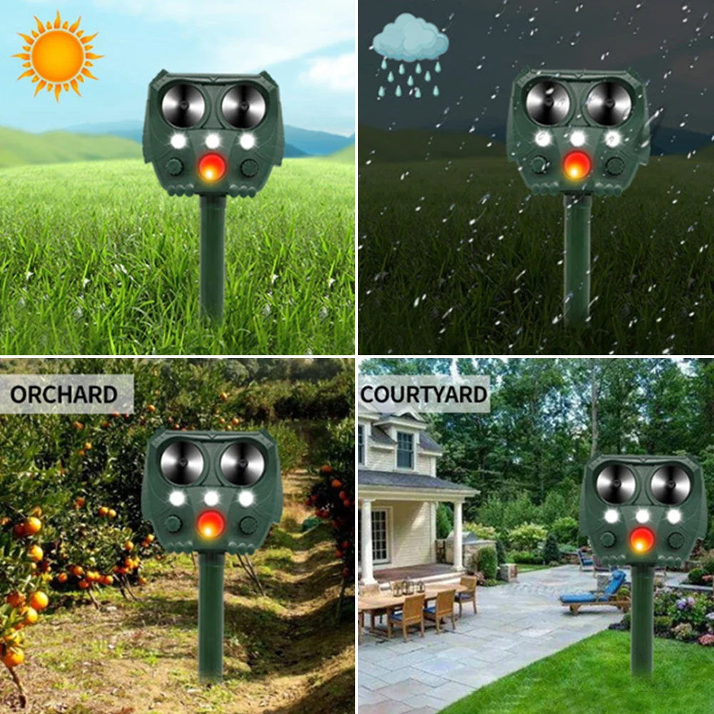 * 2.IP44 Водонепроницаемость и защита от атмосферных воздействий, уникальное уплотнение и дизайн позволяют Прикрепить устройство в любом месте. Этот открытый дистрибьютор домашних животных работает днем и ночью, 24 часа. Идеально подходит для использования на открытом воздухе, таких как сады, верфи, террасы, гаражи, подъездные дорожки, террасы, фермы, пруды, а также крыши и т. д. идеально подходит для защиты вашей собственности! ※ Примечание: Пожалуйста, не замачивайте полностью в воде.