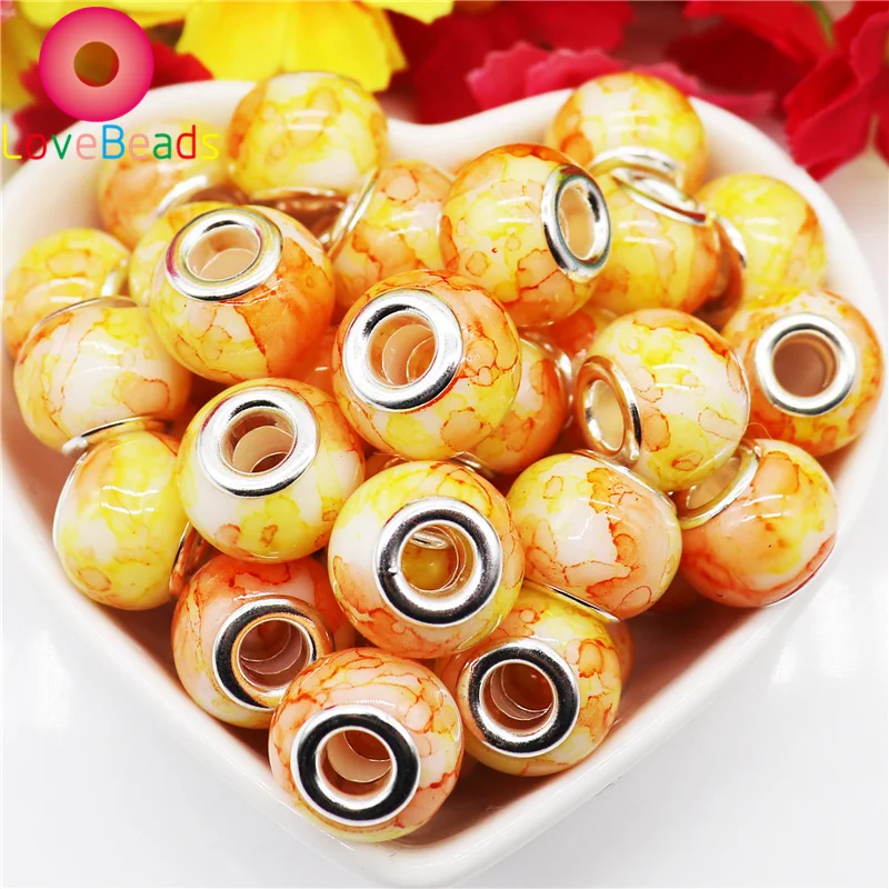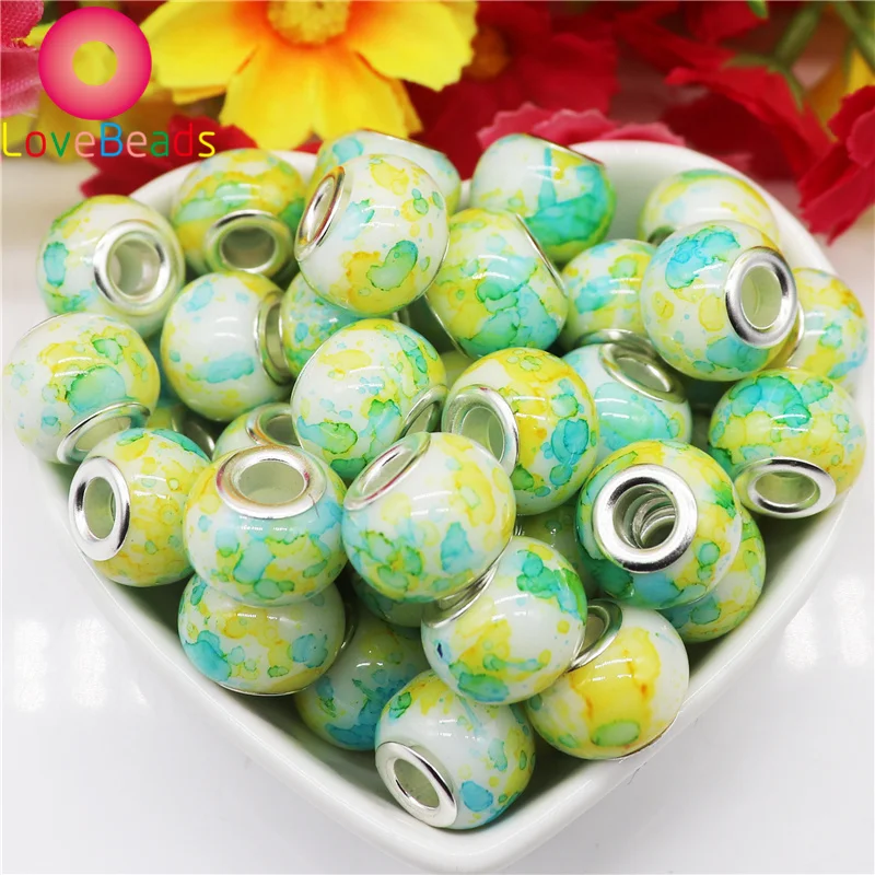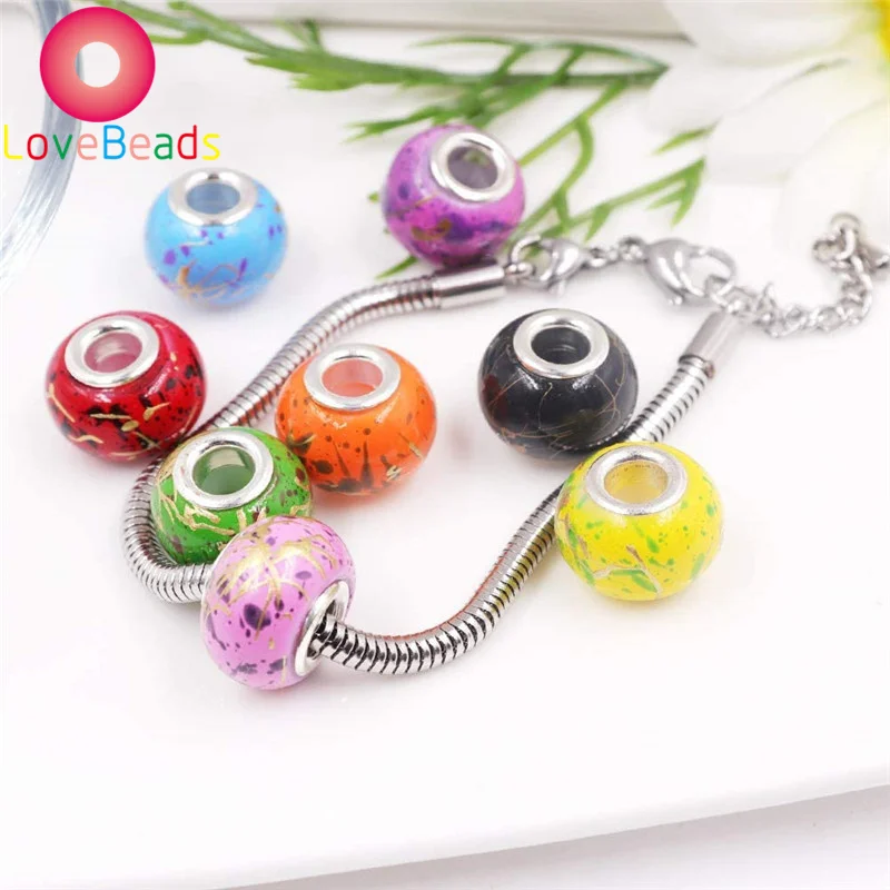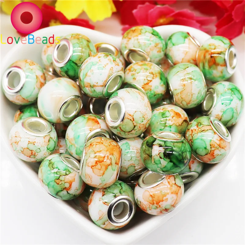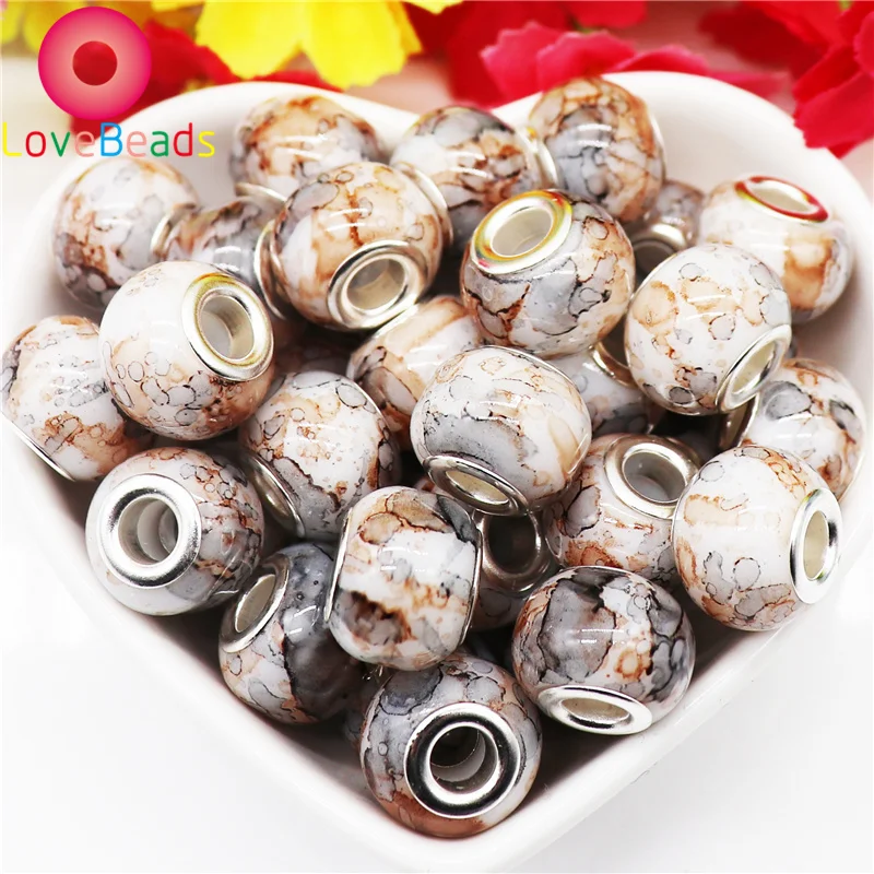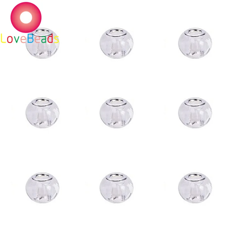 16x10 мм большие круглые свободные с большим отверстием посеребренные бусины из стекловолокна, амулеты, подходят для Пандоры, браслет, подвеска, ожерелье для женщин, сделай сам, изготовление ювелирных изделий