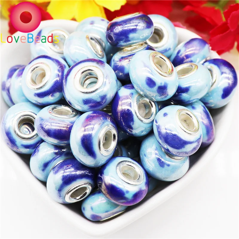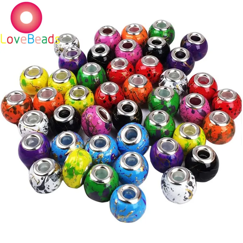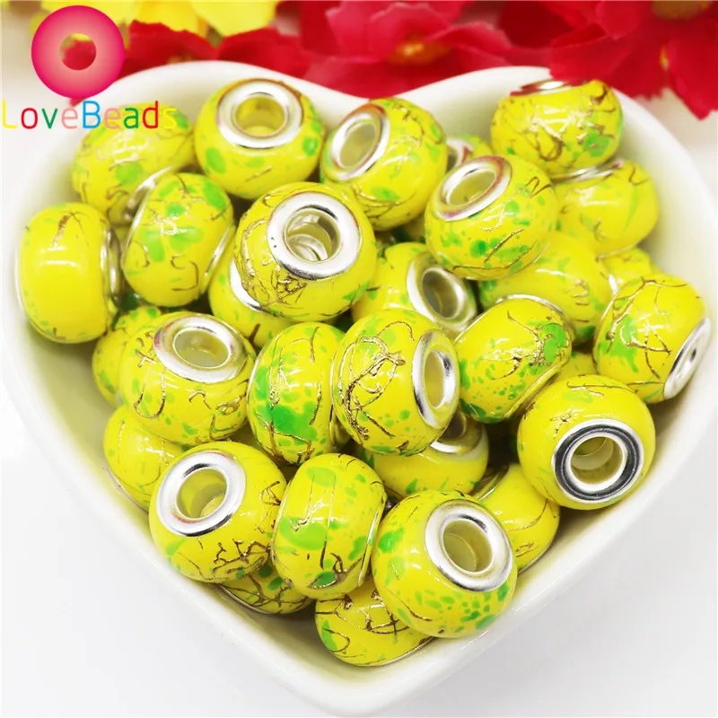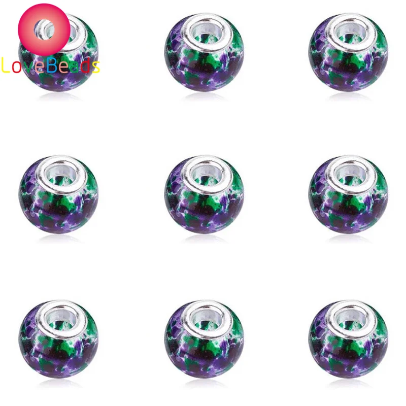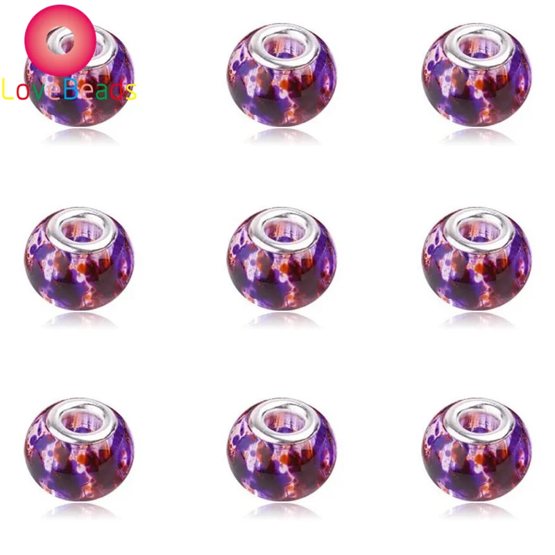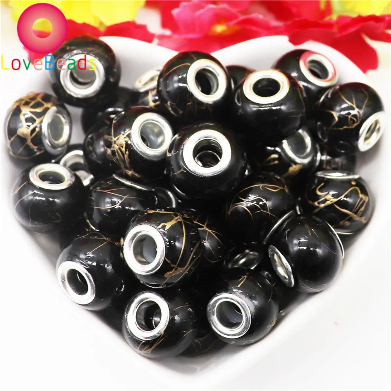 16x10 мм большие круглые свободные с большим отверстием посеребренные бусины из стекловолокна, амулеты, подходят для Пандоры, браслет, подвеска, ожерелье для женщин, сделай сам, изготовление ювелирных изделий