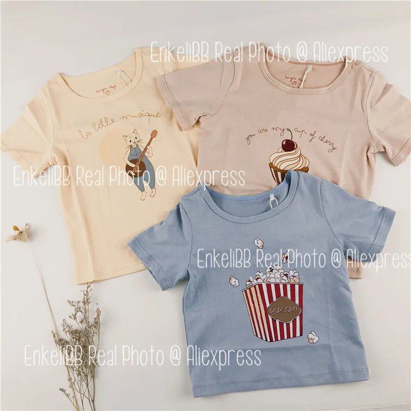 Отзывы о EnkeliBB 2021 KA детская Милая футболка с рисунком мороженого и кукурузы летние топы