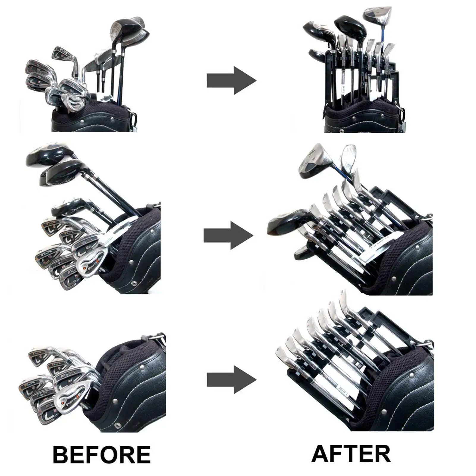 4. Разделитель гольф-клуба может держать 9 железных стержней для защиты их голов и валов и держать ваш клуб хорошо организованным.