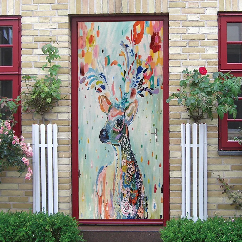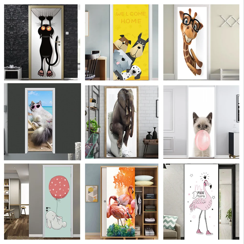 Отзывы о Animals PVC Wallpaper Self-adhesive 3D Door Sticker Cat Rabbit Dog Elephant Mural Removable Home Decor Decal DIY Deur | Дом и сад