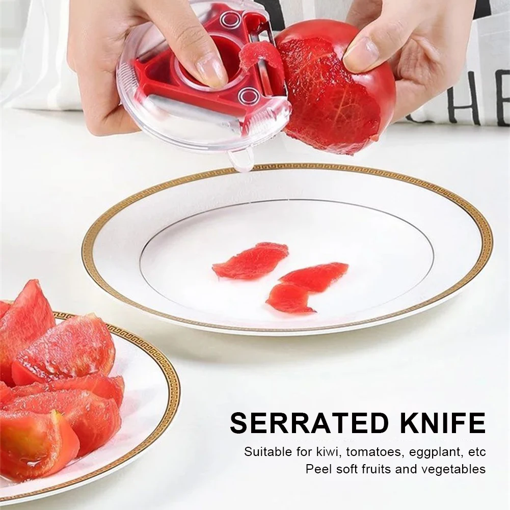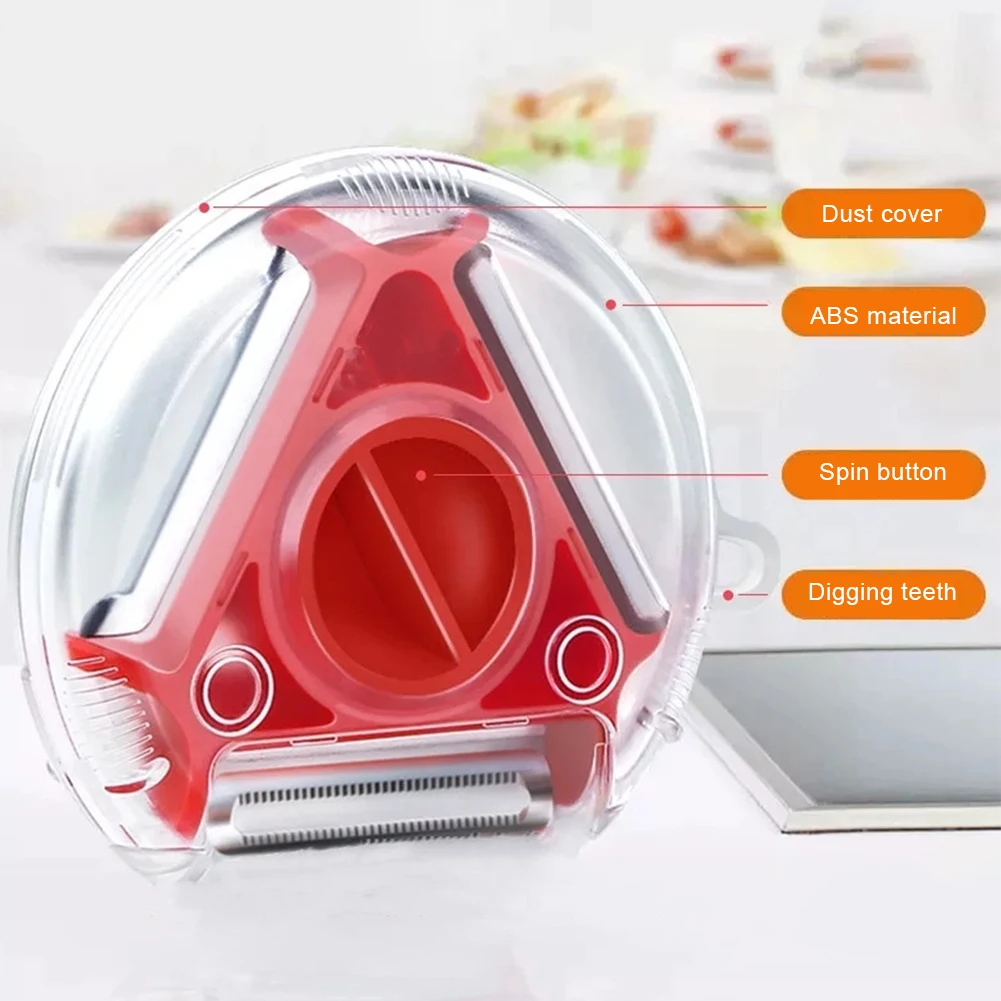 * 1. 3 в 1 дизайн: Овощечистка имеет три лезвия. Вам нужно только изменить кнопку, и вы получите три разных лезвия. Каждое лезвие должно быть помещено в нужное место. Подходит для мягкой кожи, твердой кожи и измельчения.