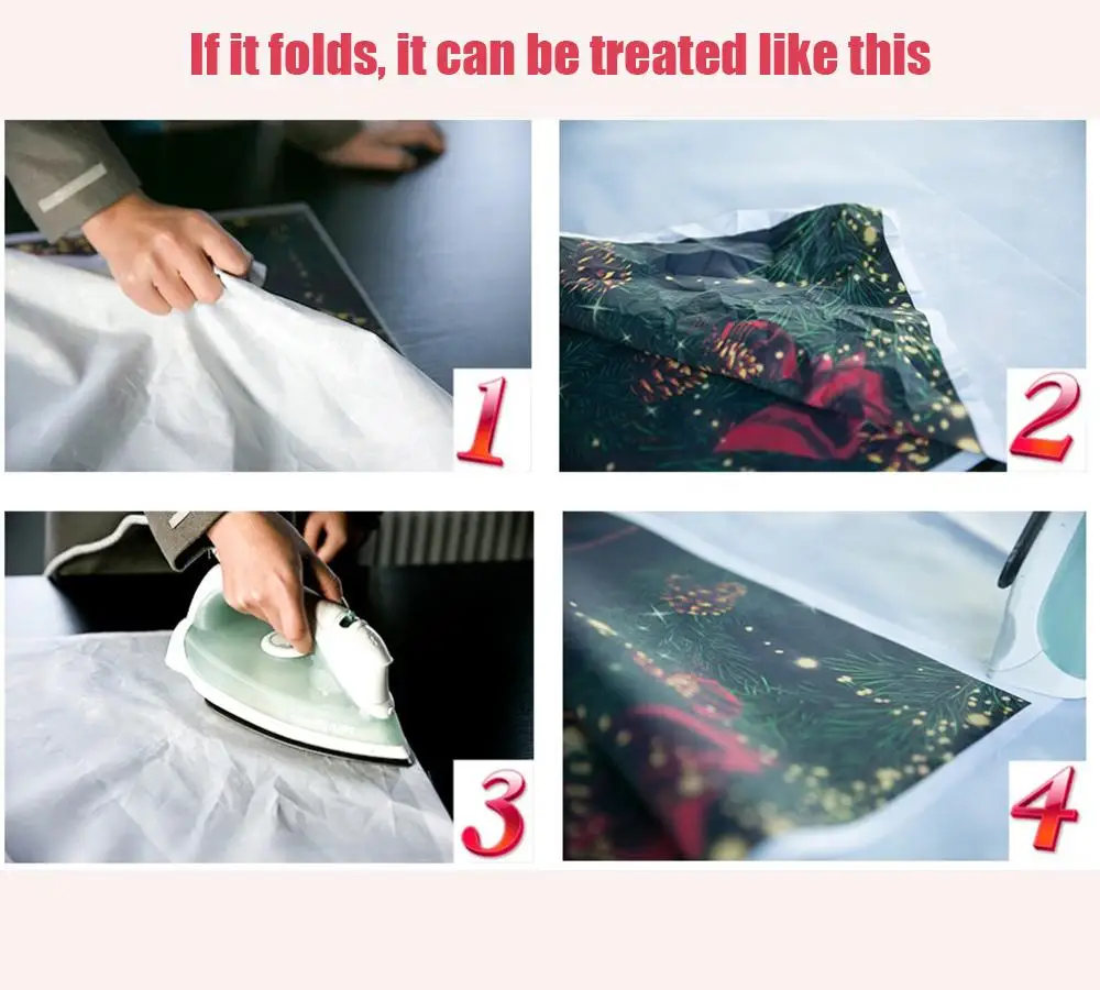 Рекомендации удаления морщинки: 1. Можно повесить на несколько дней; 2. Или вы можете плотно свернуть его цилиндрическим предметом и оставить на некоторое время; 3. Или, если вы можете попробовать погладить его с обратной стороны, положив сухую ткань между утюгом и фоном на случай, если фон намокнет, так как он напечатан на компьютере, так что он будет легко поврежден, если он мокрый.