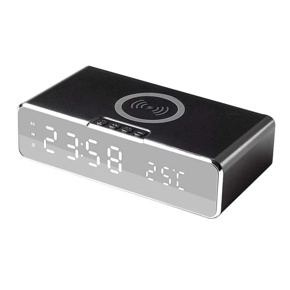 Беспроводная зарядка: Этот Многофункциональный Будильник поддерживает наиболее универсальную Беспроводную зарядную модель сотового телефона, 10 Вт Qi-сертифицированная Беспроводная зарядная панель,