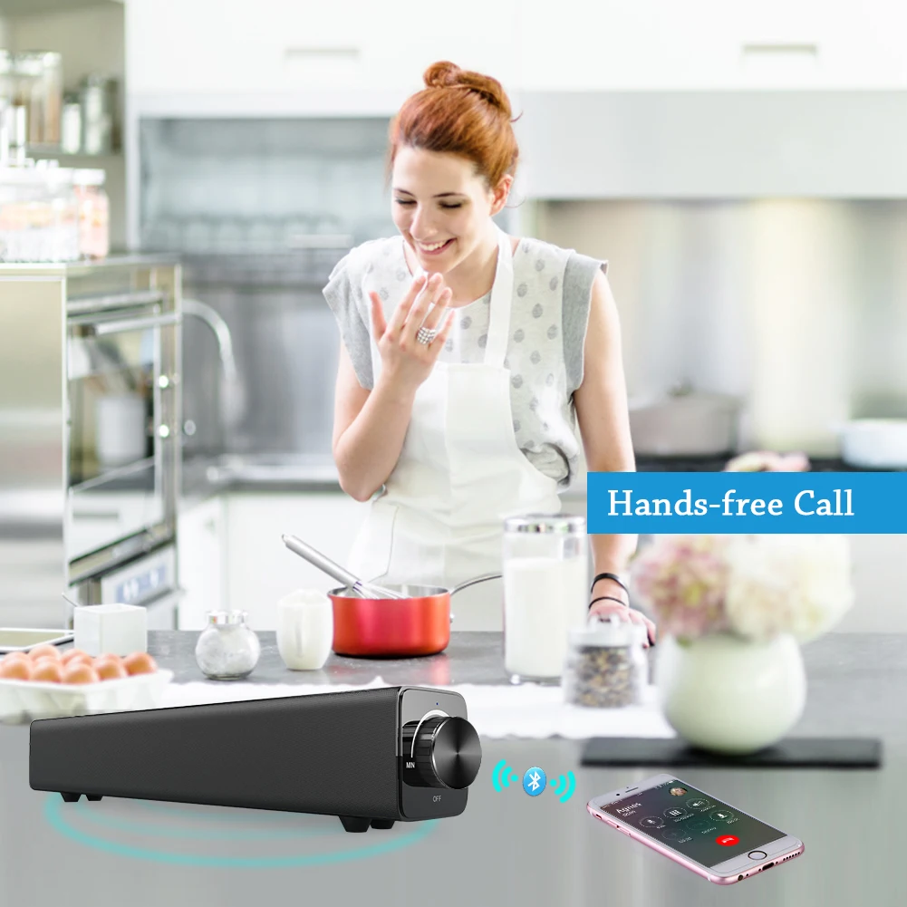 1. Bluetooth Connect: Connect your mobile phones, tablet with the sound bar via Bluetooth, speaker automatically reconnects to the last device used;