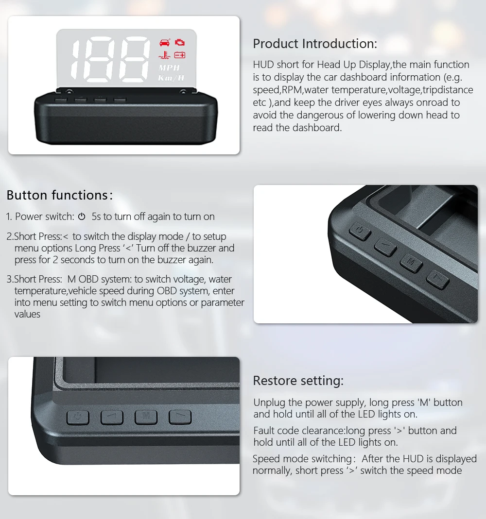 Продукты HUD не поддерживают JOBD и OBDI, заменяют другие транспортные средства, которые отвечают интерфейсу OBD2