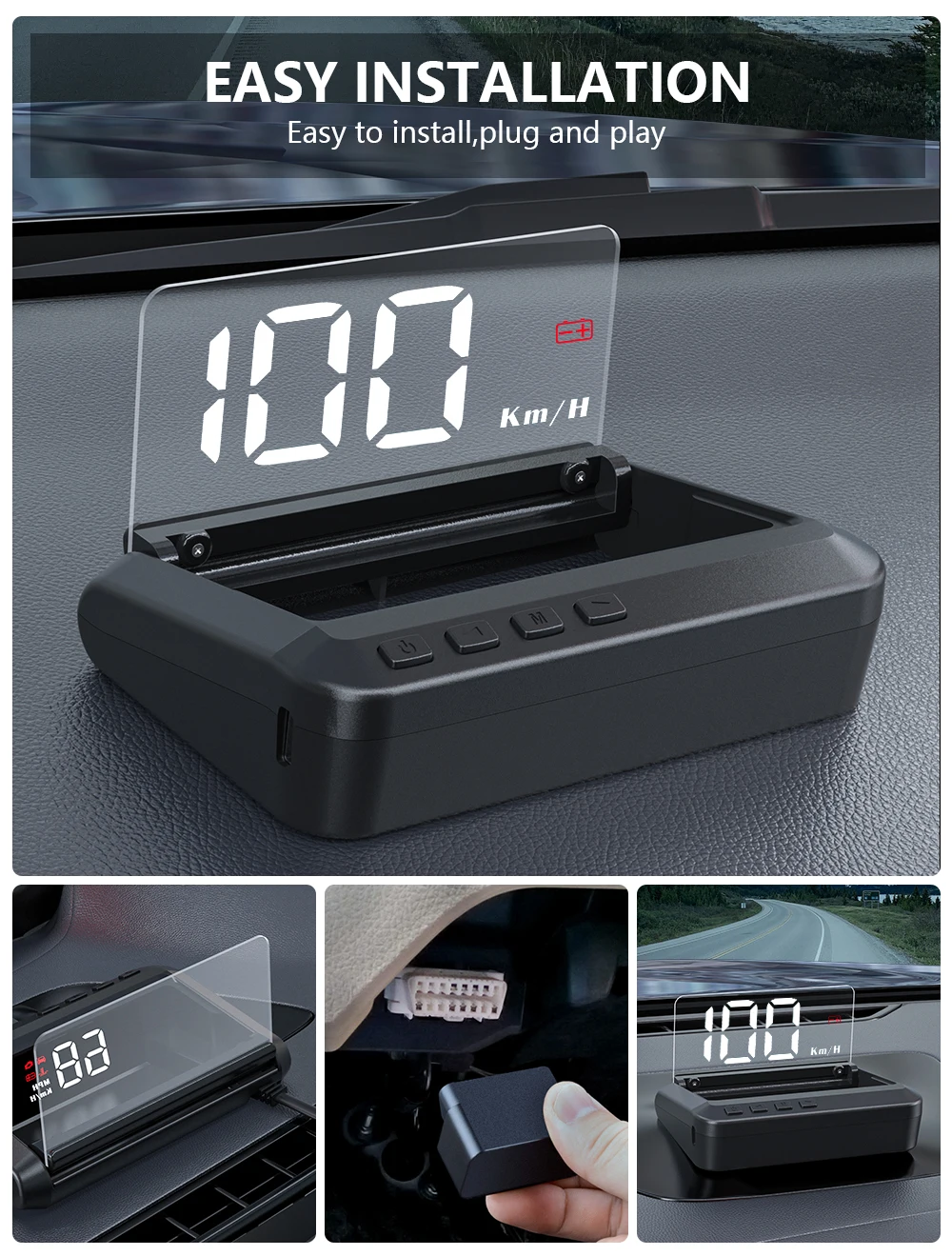 4. Легко установить, нужно только подключить HUD с автомобильным OBD портом с помощью OBD кабеля, HUD будет отображаться, когда автомобильный двигатель ВКЛ/ВЫКЛ