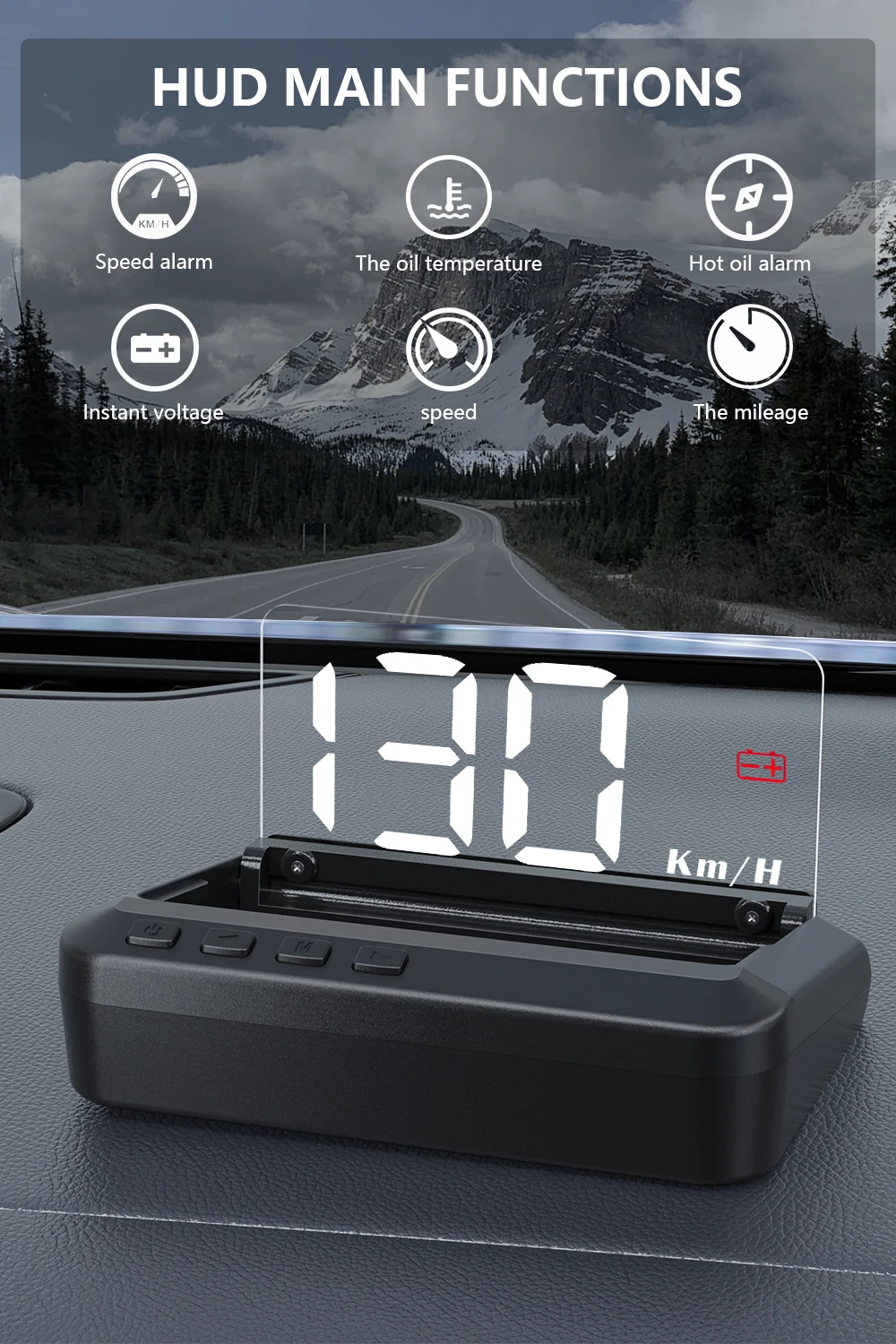 HUD короткий для отображения головы, основная функция-отображение информации о приборной панели автомобиля (e.g. Скорость, об/мин, температура воды, напряжение, расстояние поездки и т. Д.), и держать глаза водителя всегда на дороге, чтобы избежать опасности опускания головы, чтобы прочитать приборную панель.
