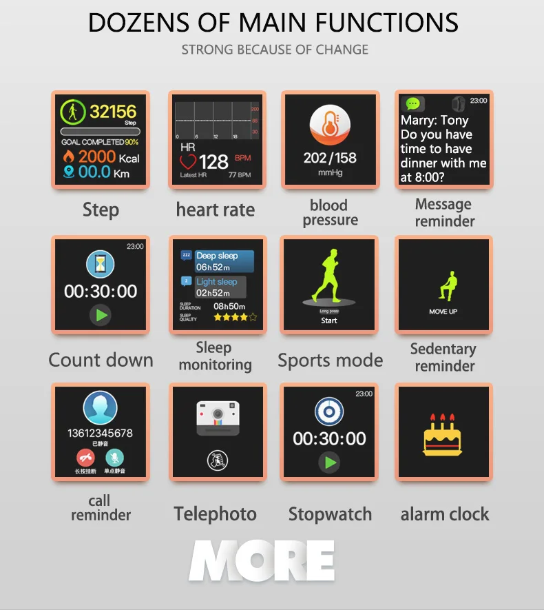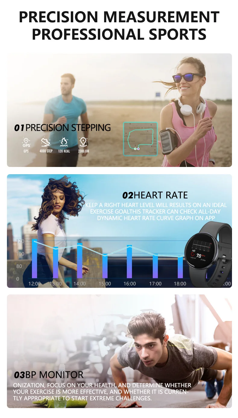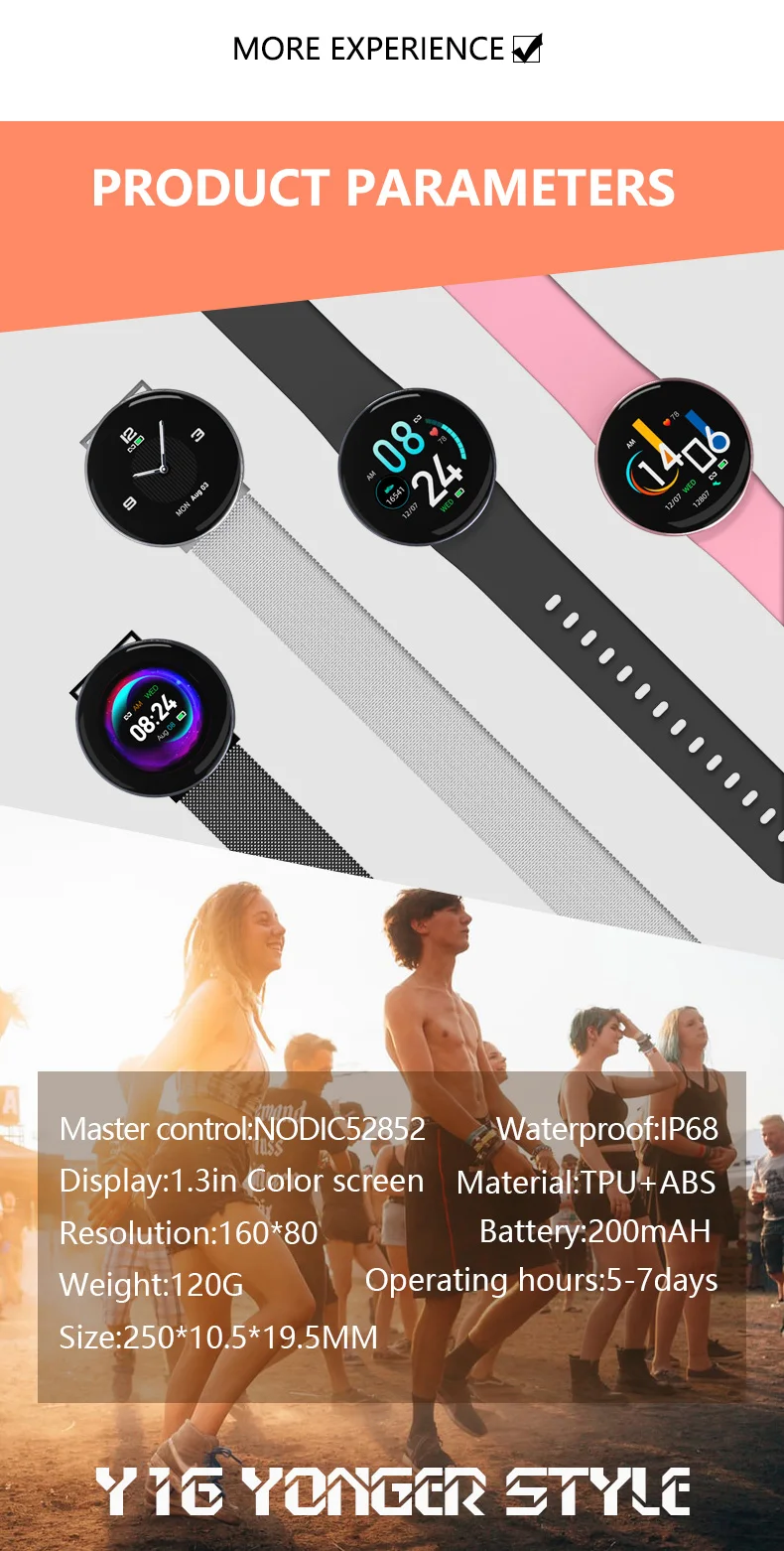 Напоминание о звонках, идентификатор звонящего, отказ отвечать на вызов, напоминание о сообщениях, трекер здоровья, шагомер, монитор сердечного ритма, напоминание о сидячем положении, монитор сна, функция дистанционного управления, камера дистанционного управления, будильник пульса, секундомер, обратный отсчет, (открытый бег, уличная ходьба, Крытый бег, внутренняя ходьба, Походные, шаговые, уличные велосипедные, домашние велосипедные, эллиптические машины, гребные машины) женские менструальные функции Оборудование Встроенный чип скандинавский 52832 Версия Bluetooth 4,0 Экран Разрешение экрана 240*240 Экран размер 1,3 дюйм (ов) Режим работы с одним сенсорным экраном Аккумулятор Тип батареи литий-ионный аккумулятор Емкость аккумулятора 200 мАч Время зарядки: около 2 часов Время работы в режиме ожидания 10-15 дней Материал Материал корпуса цинковый сплав Материал ремешка ТПУ + стальной ремешок Милан Совместимая система Android 4,4/iOS 8,0 и выше Язык приложения: английский, французский, испанский, португальский, русский, немецкий, итальянский, упрощенный китайский, традиционный китайский, вьетнамский, японский, корейский Водонепроницаемость: IP68 водонепроницаемый