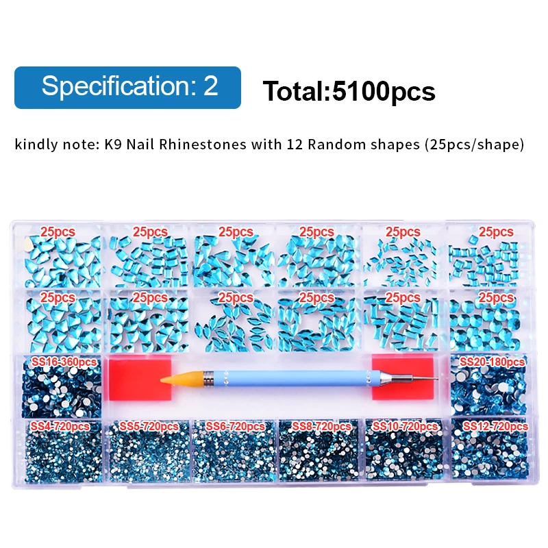 Стразы для дизайна ногтей -- 50 шт/ячейка (всего 12 ячеек)