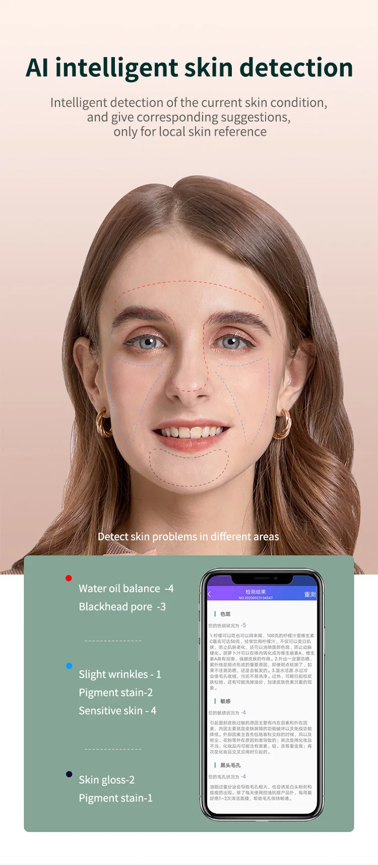Особенности: 1. Безопасный и удобный в использовании, без побочных эффектов для everlily; Вакуумное всасывание, сила всасывания до 65 кПа. 2. С помощью камеры можно подключить телефон. Что может видеть поры прозрачными. Foreverlily 3. Встроенный макрообъектив 20x, автоматическое подключение к мобильному телефону WiFi, прямой эффект просмотра на мобильном приложении, просмотр и сосание. 4. Сила всасывания трех передач может быть отрегулирована, и три вида всасывающих головок приведены случайным образом, которые подходят для всех видов чувствительной кожи. В сочетании с нанесением, весь процесс визуальной эксплуатации может избежать повреждения кожи и проблем с очисткой, вызванных традиционными продуктами слепого всасывания. 5. В сочетании с программным обеспечением интеллектуального обнаружения AI, сочетаются с большими данными; Оптимизируют схему ухода за кожей, а также снимают фотографии и видео. Работает он или нет, ясно с первого взгляда. Аккумулятор емкостью 6,1000 мА · ч, USB зарядка, может использоваться везде. Продукт включает в себя: 1 X визуальное удаление черных точек USB кабель (1 шт.); 4 х всасывающая головка Руководство пользователя-1 шт.; Примечание: Foreverlily 1. Используется только в качестве средств личной гигиены. Не подходит для увеличения носа и всех других частей, которые прошли косметическую хирургию кожи. Не может использоваться в качестве медицинского оборудования. 2. Детям не рекомендуется использовать его самостоятельно. 3. Беременным женщинам и больным сердцем не рекомендуется. 4. Не рекомендуется использовать в местах с слишком тонкой кожей. 5. Кожа с рубцами и шрамами не рекомендуется. 6. Не используйте его непосредственно вокруг глаз, ушей и других частей. 7. После ухода кожа будет немного красноватой, это нормальное явление. Не беспокойтесь об этом 8. Держите продукт в прохладном и сухом месте, вдали от коррозионных веществ. 9. Не используйте воду непосредственно для очистки продукта Используйте пылезащитную ткань, чтобы аккуратно протереть 10. Продукт. 11.Wi-Fi не может использоваться для серфинга в intermet. Foreverlily 12. Этот продукт находится в близком фокусе и не может использоваться в качестве оборудования для мониторинга.
