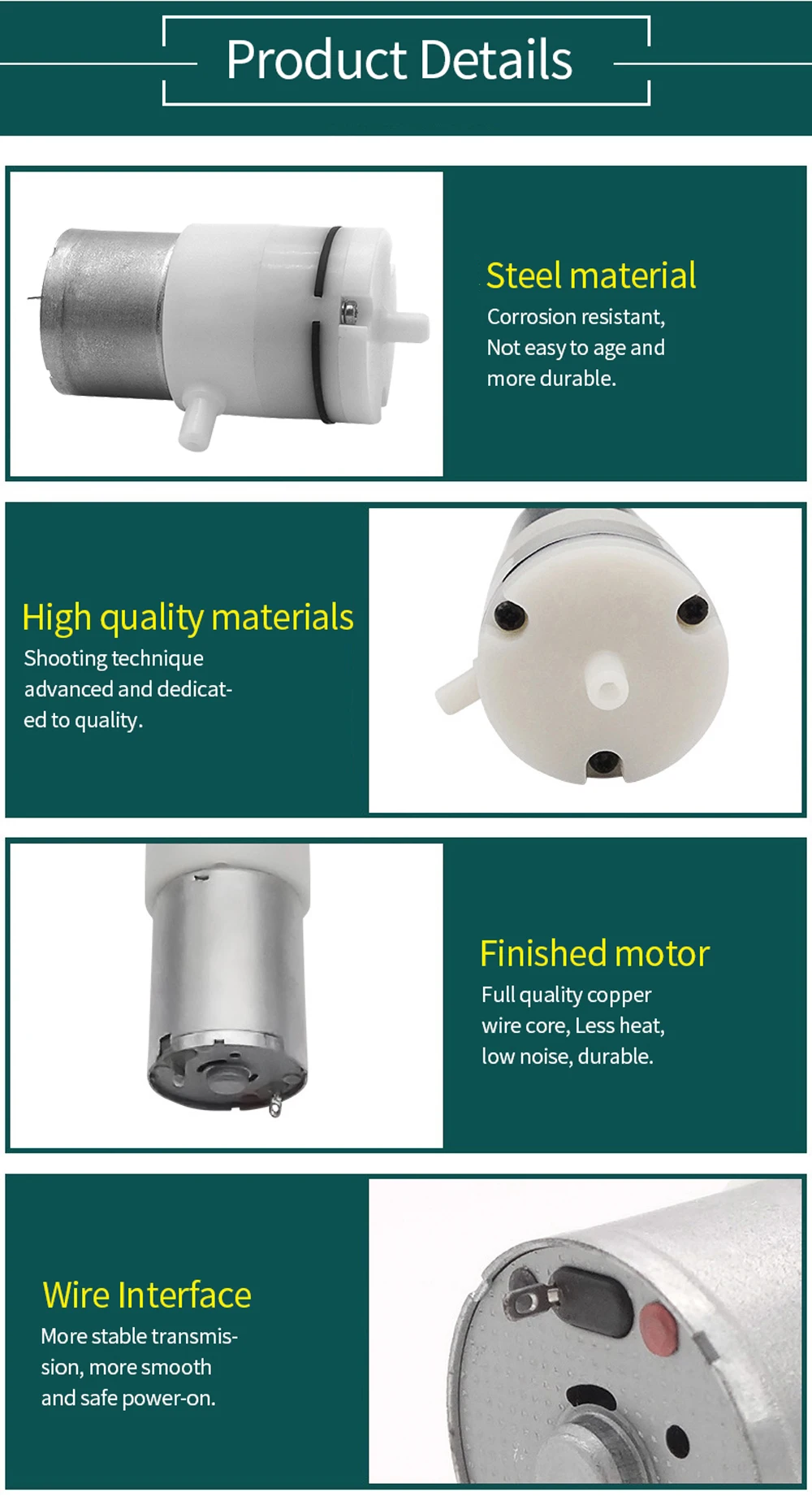 Наш воздушный вакуумный насос использует высокотехнологичный специальный внутренний дизайн глушителя, что делает его супер компактным, супер тихим, легким и долгим сроком службы.
