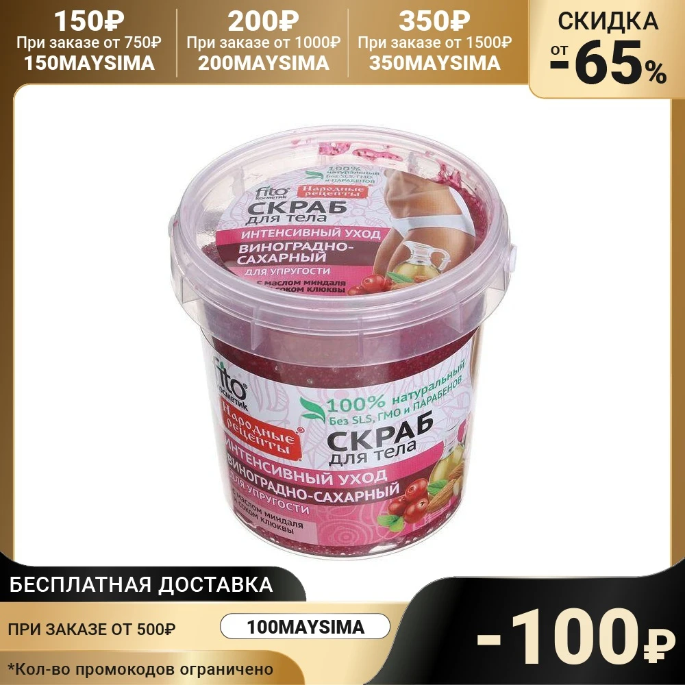 Отзывы о Скраб для тела "Народные рецепты" виноградно-сахарный банка 155 мл 2073098 |