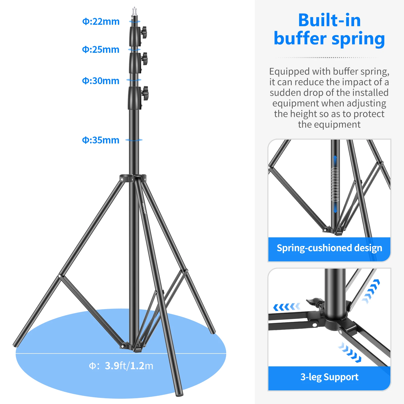 Neewer PRO 9 футов/260 см сверхмощный алюминиевый сплав светильник для фотостудии Набор для видеосъемки, портретной съемки и фотосъемки светильник (1/3 шт)