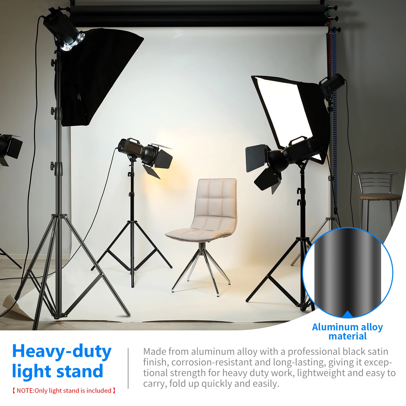Сделано по промышленному стандарту, он поддерживает все основные бренды фототехники, такие как отражатель, софтбокс, различные огни, зонтик, фон и т. Д.