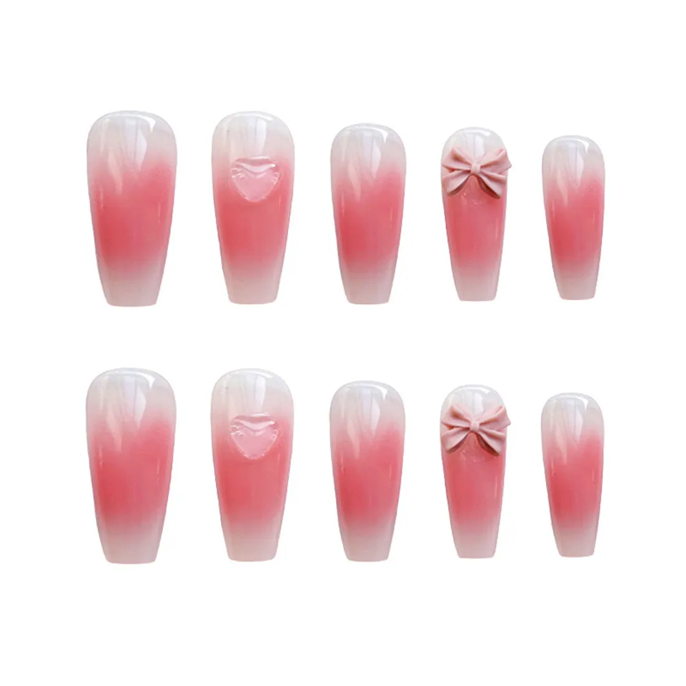 Отзывы о 24Pcs French Nude Pink Gradient Long Ballet Fake Nails Wearable Finished Full Cover Coffin Artificial Tips with Press Glue - купить по