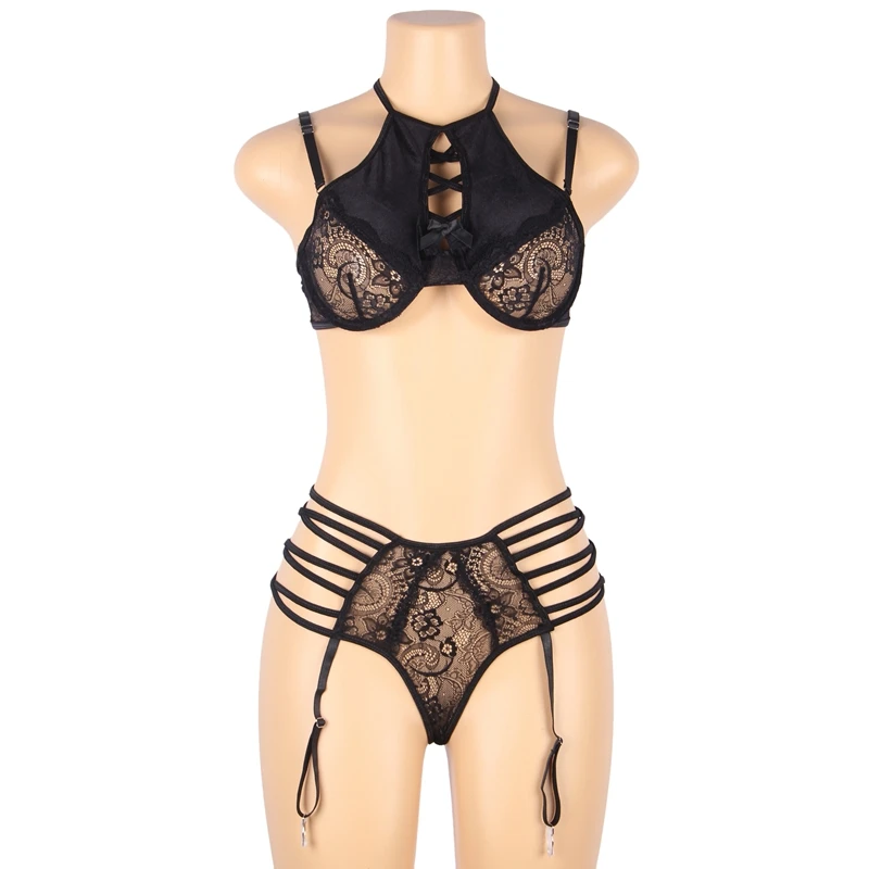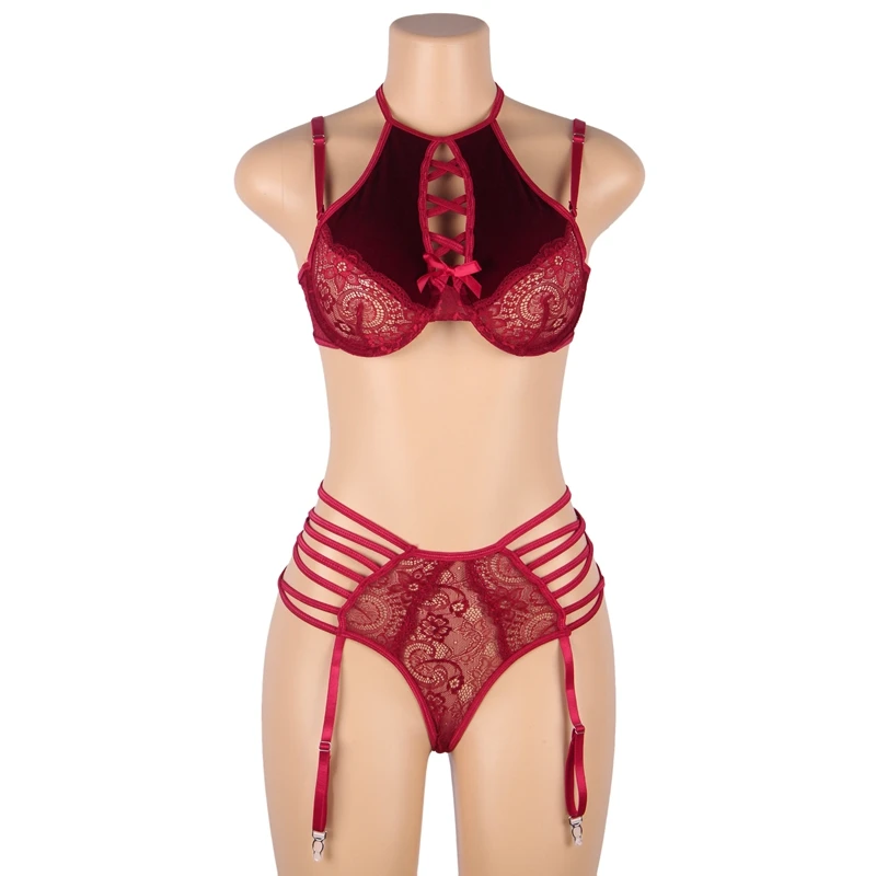 Отзывы о Комплект кружевного нижнего белья Comondear с подвязками бархатное женское нижнее