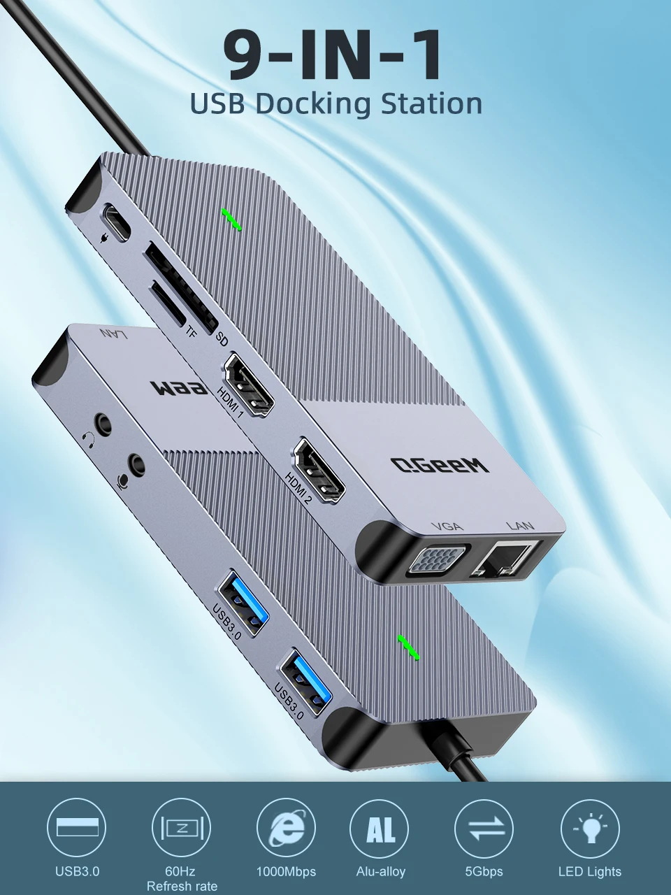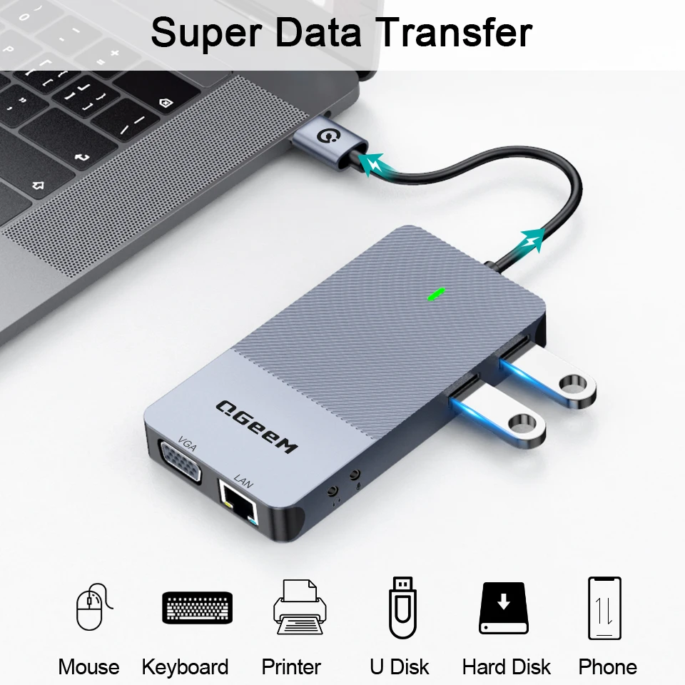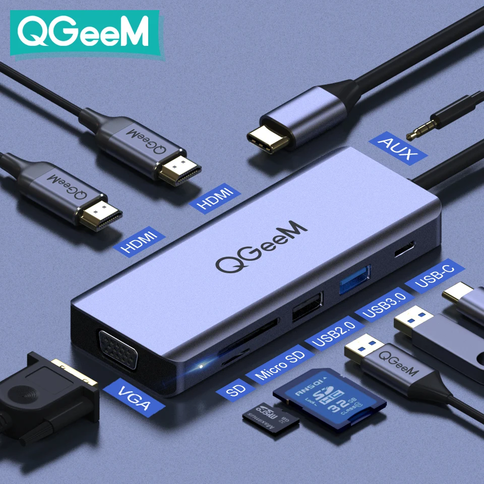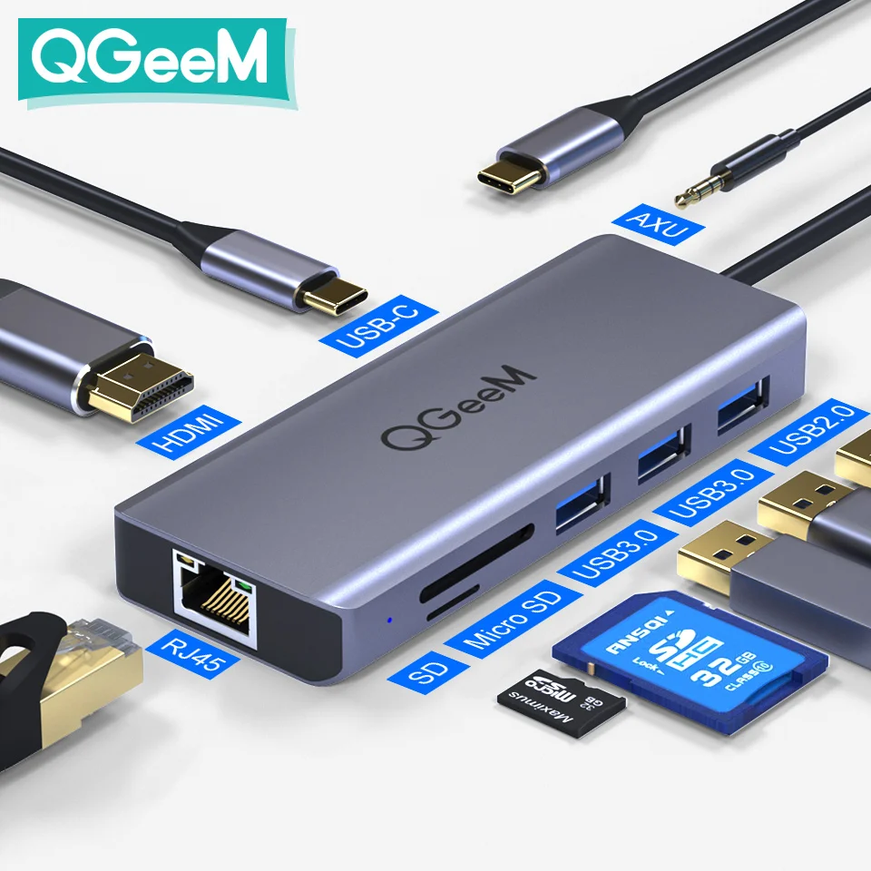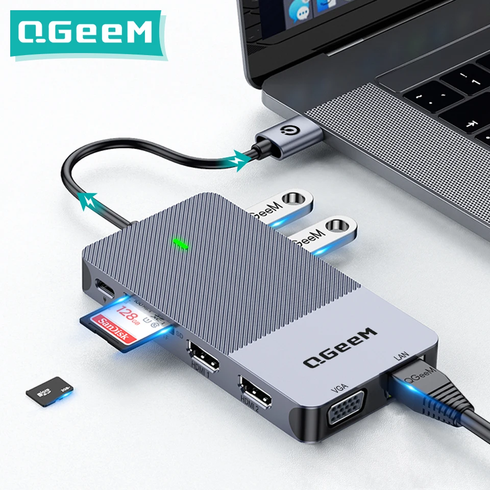 Универсальное решение для ваших ноутбуков и планшетов Type-C, подключите больше к док-станции QGeeM 9-in-1 USB C