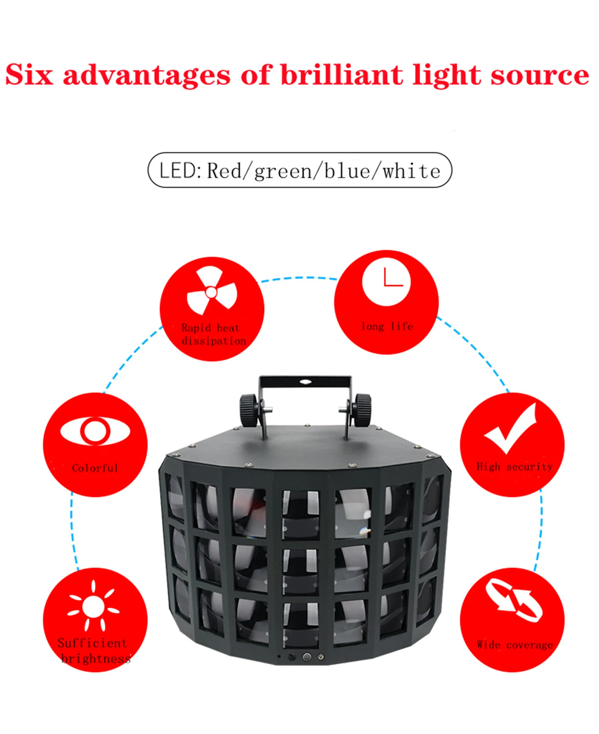 Отзывы о Дискошар DJ цветной 2x12w rgbw миниатюрный светодиодный трехпанельный разноцветный