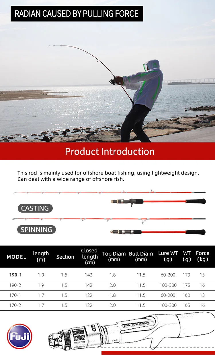 Отзывы о Сплошной углеродный легкий медленный джиг 1 9 м 200 вес приманки 60-100 г или 300-г