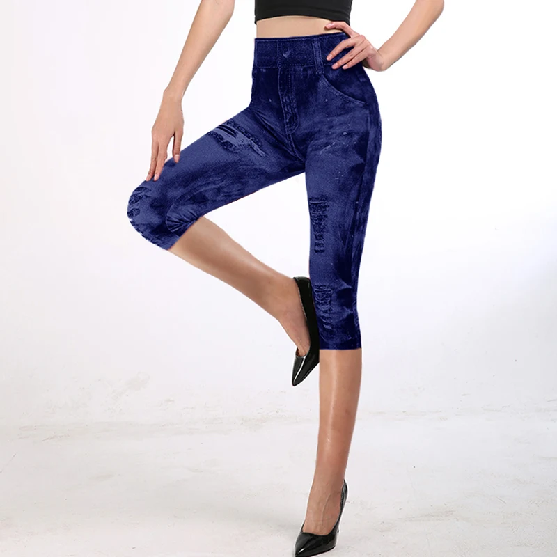 Отзывы о Леггинсы женские из искусственного Джинса с высокой талией эластичные 3/4 3XL