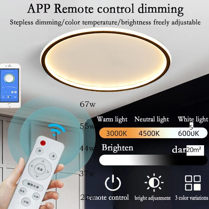[Примечание]: в тех случаях, когда с помощью пульта дистанционного управления, яркость света может быть изменен, И свет с регулируемой яркостью. Вы также можете изменить цветовую температуру плавно между теплым белым, нейтральный белый и холодный белый свет.