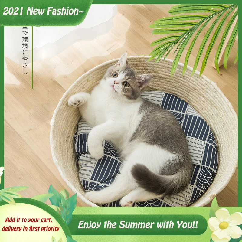 Новый простой тканый диван-кровать в японском стиле с кошкой, корзинное гнездо на четыре сезона, универсальный диван из ротанга для кошек, щенков, собачий коврик для домашних животных, поставщики