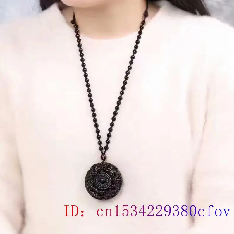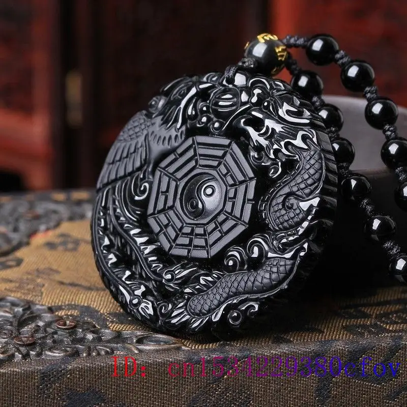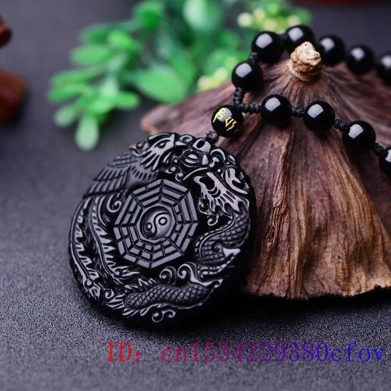 Дракон из обсидиана Феникс кулон бусины ожерелье амулет для китайского шарма ювелирные изделия нефрит женский черный натуральный модные подарки