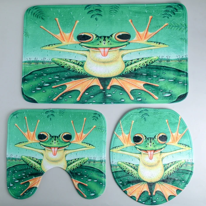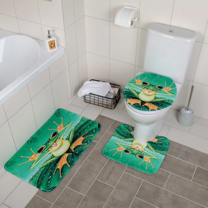 Набор ковриков для ванны и туалета 3 шт 37х42, 40х45, 45х75 см "Лягушонок"