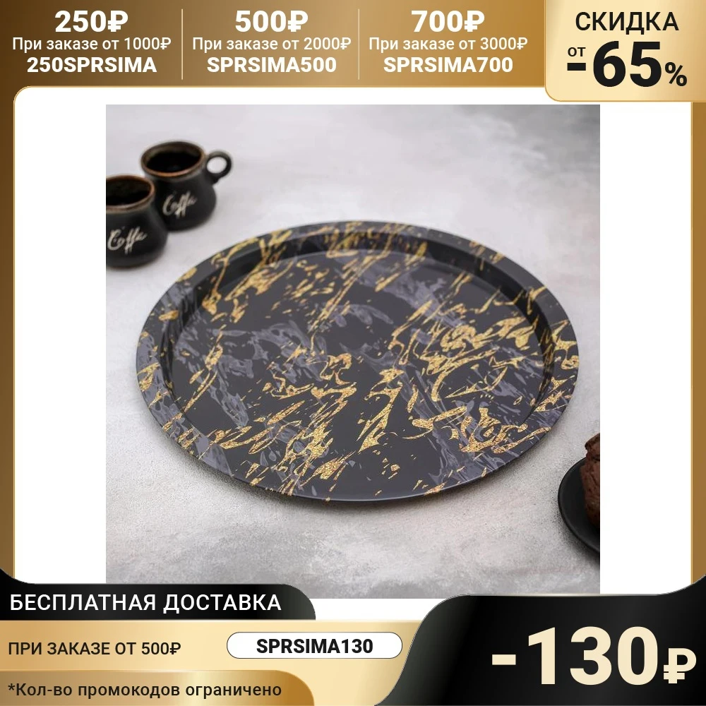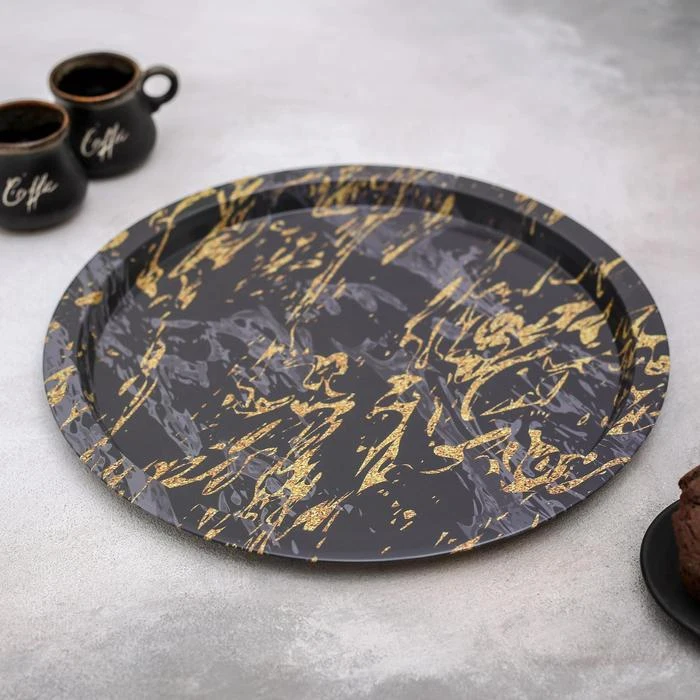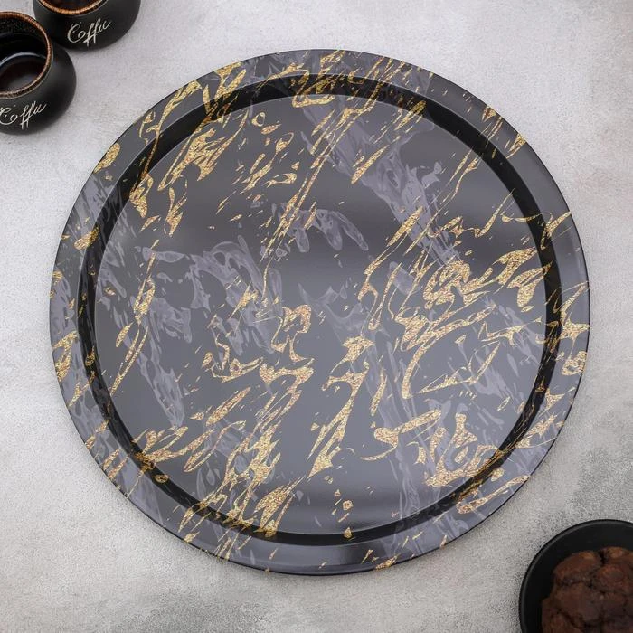 Отзывы о Поднос металлический Золотой мрамор 32×32×1 5 см цвет чёрный | Дом и сад