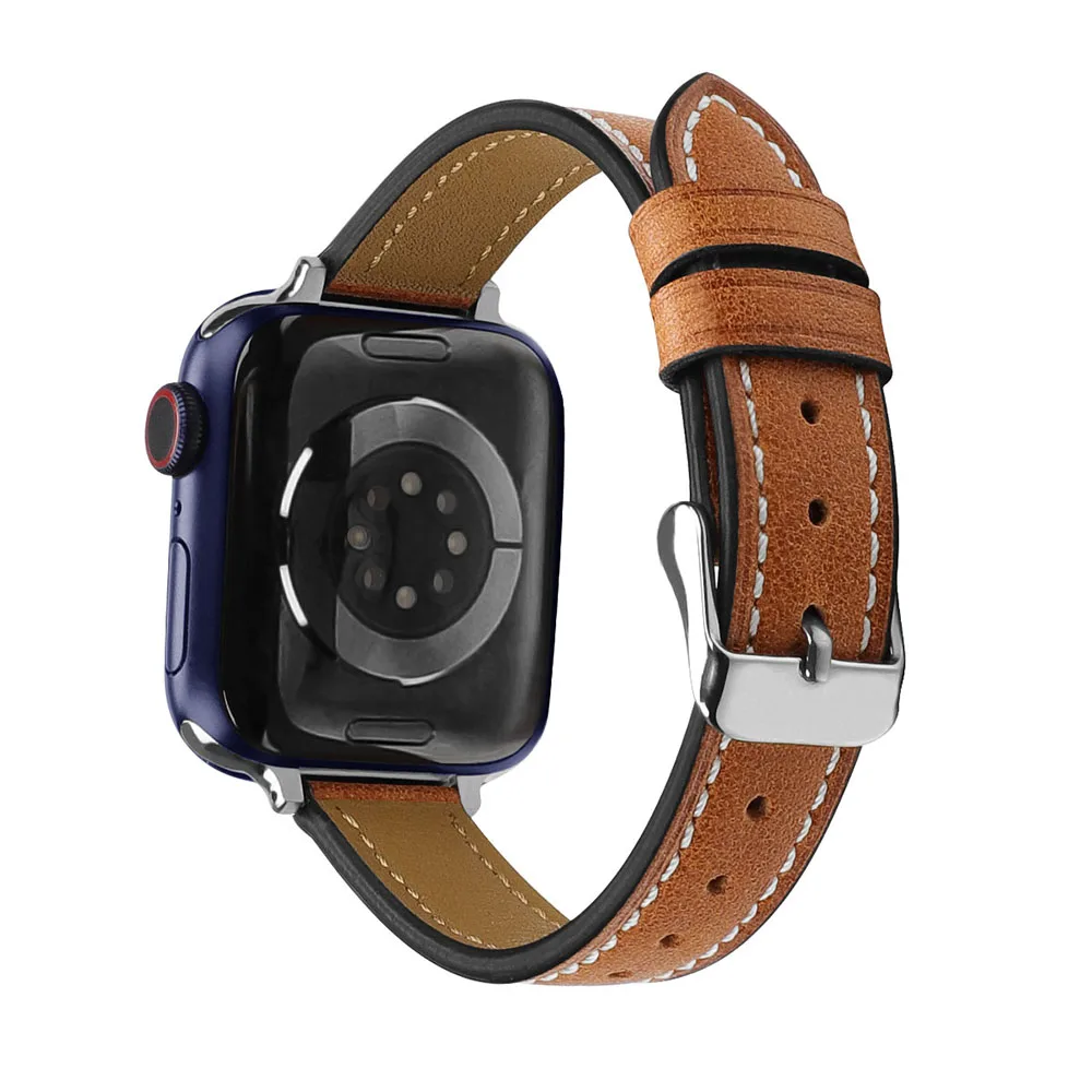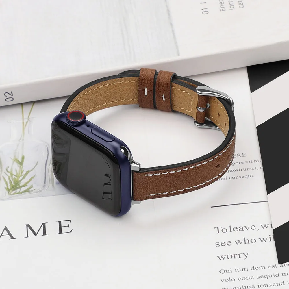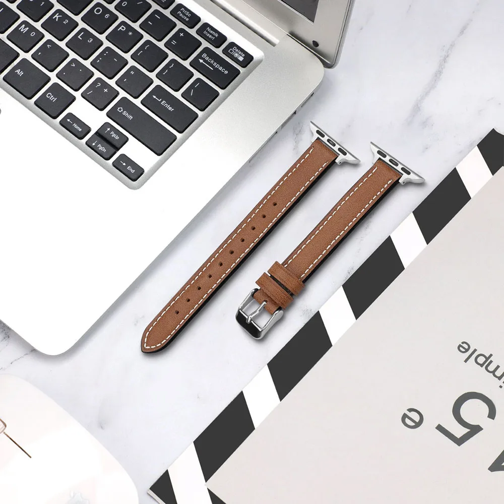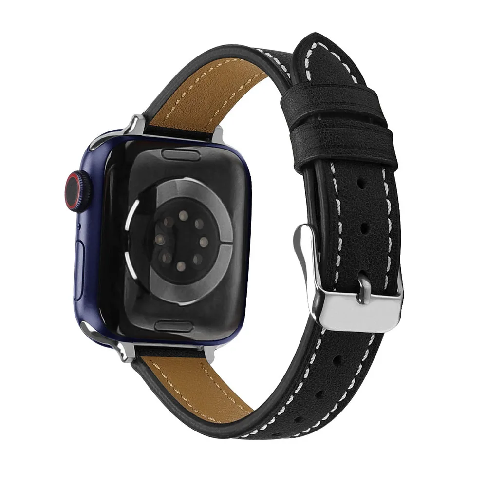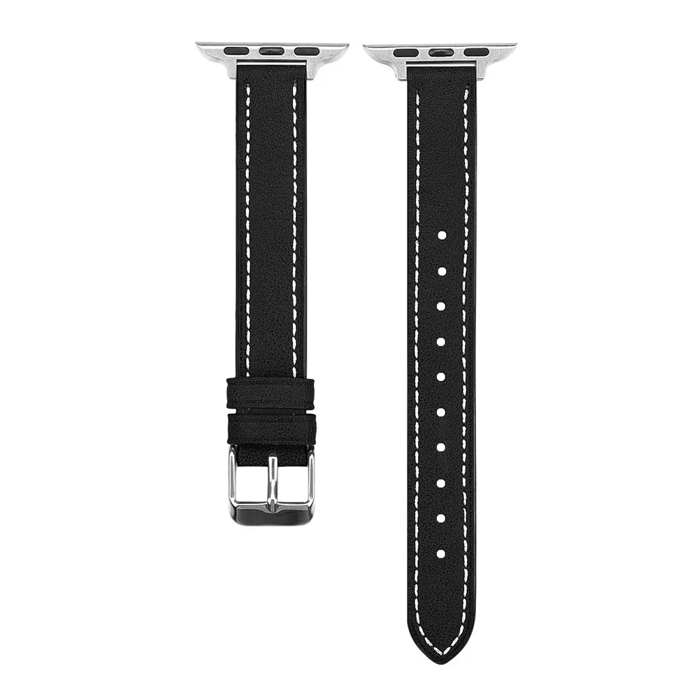 Мужской и женский тонкий ремешок для Apple Watch SE 42 мм 44 мм ремешок из натуральной кожи для iWatch Series 6 5 4 3 2 1 38 мм 40 мм черный браслет