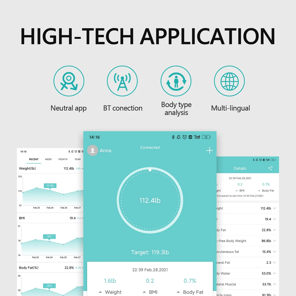Он использует передовую технологию анализа Биоэлектрического сопротивления (BIA) для проектирования для получения точных данных о теле, так что вы можете использовать его для достижения ваших целей потери веса. Диапазон взвешивания от 4 до 400 фунтов. Даже чашка воды может быть обнаружена. Приходите, чтобы сменить ваше тело из чашки воды.