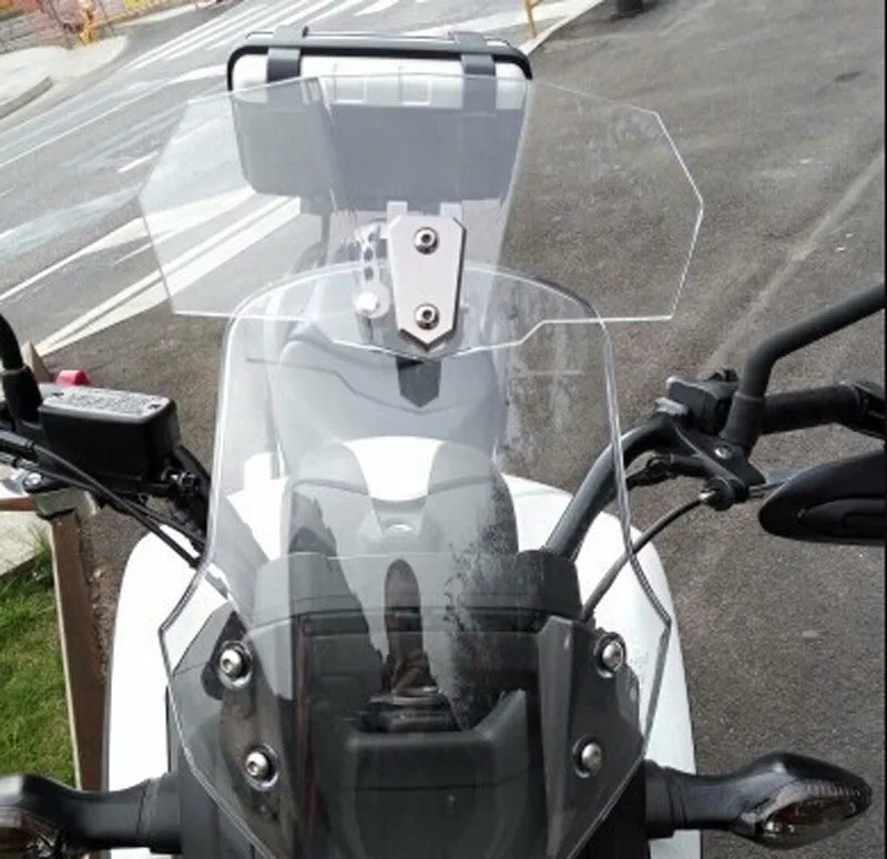 * Регулируемое лобовое стекло мотоцикла, закрепленное над оригинальным лобовым стеклом, для повышения безопасности рыцаря.