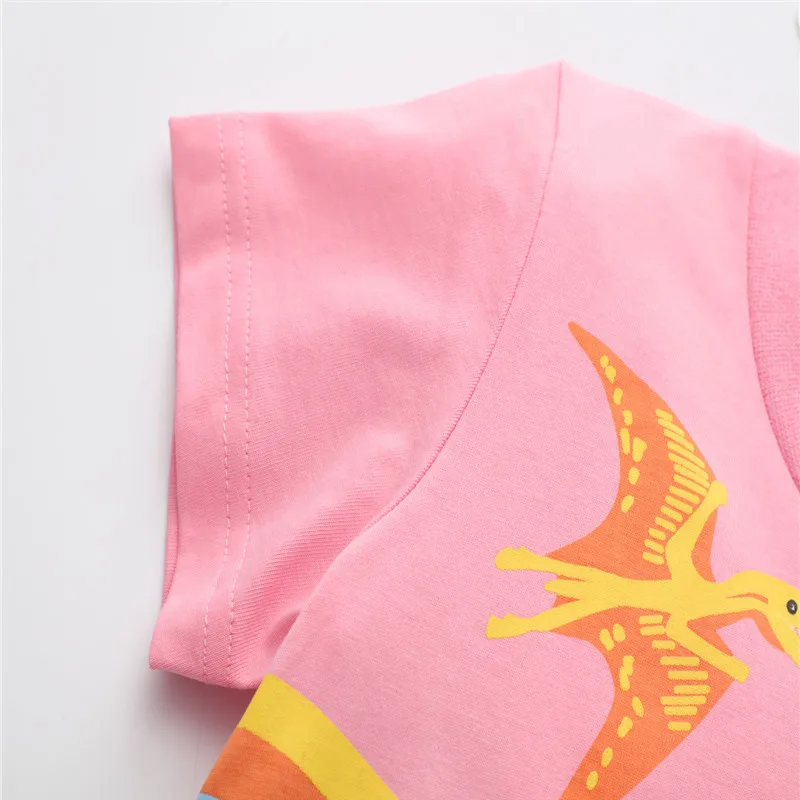 Отзывы о Jumping Meters/розовые с принтом динозавра модные летние футболки для девочек детская
