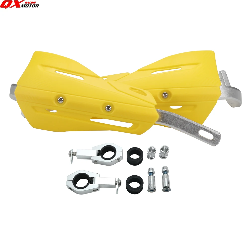 Характеристики: -- Производство: Китай -- 100% новый, никогда не монтируется -Защитите руки от кистей, камней, грязи и холодного ветра -- Защита тормозных сцепления дроссельной заслонки -- Легко установить -Выбор цвета: как на фотографии -- Материал: ПП пластик + алюминиевый сплав -- Посылка включает в себя: 1 х Набор для защиты рук (слева + справа) 1 комплект фитинга -Примечание: инструкции по установке не включены Приспособление: Универсальные монтажные комплекты для мотоцикла Dirt Bike MX Подходит для всех рулей длиной 7/8 "22 мм и 1 1/8" 28 мм