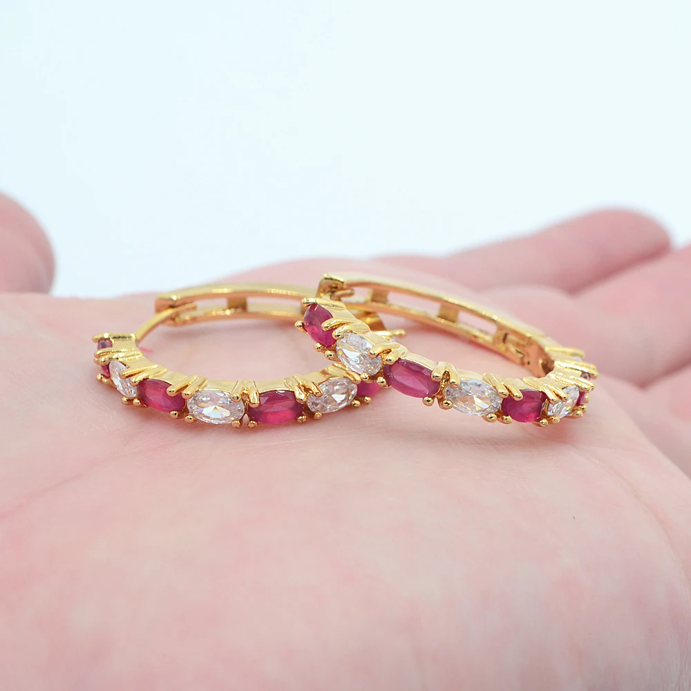 Отзывы о Модные женские серьги-кольца Huggie золотого цвета с розово-красным фианитом