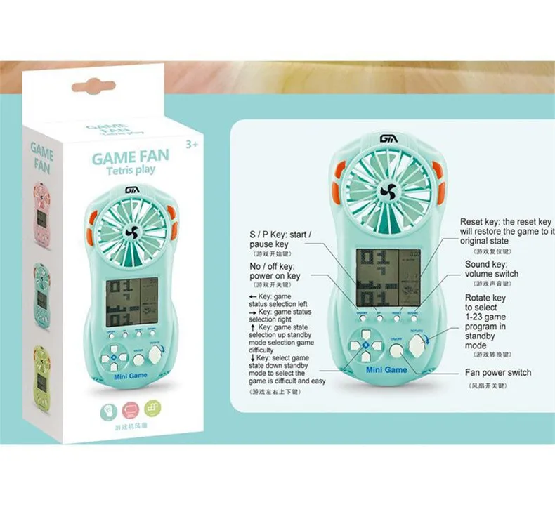 1. 23 различных игры: HD дисплей с 23 играми, отличная игровая консоль для уничтожения времени и снятия стресса. 2. Удобный вентилятор: игровой консоли включает в себя Ручной USB вентилятор, который включает в себя 3 уровня регулировки скорости ветра, благодаря чему игровой консоли модные классические и уникально. 3. Отличная прочность: очень практично, вы можете играть в игры, наслаждаясь охлаждающим ветром, обеспечиваемым вентилятором. 4. Легко носить с собой: мини и портативный, вы можете легко положить его в сумку для переноски. 5. Дополнительные цвета: 3 цвета на выбор, идеально подходит для мальчиков и девочек. И игровая приставка станет прекрасным подарком для семьи и друзей.
