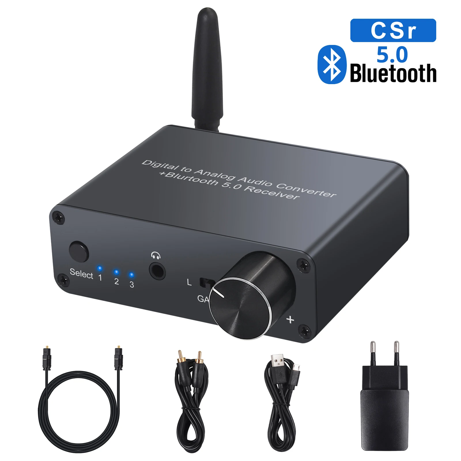 Особенности: 1. Встроенный Bluetooth-совместимый модуль приемника V5.0 и поддерживает подключение к мобильному устройству, совместимое с Bluetooth. 2. Поддерживает цифровое преобразование аудио в аналоговые аудиосигналы. 3. Встроенный высокопроизводительный чип DAC, поддерживает скорость дискретизации 192K/24bit. 4. Принимает Bluetooth-совместимую выделенную антенну для стабильной передачи сигнала. 5. Поддерживает один оптический и один коаксиальный входной интерфейс. 6. Поддерживает один RCA и один разъем 3,5 мм аудиовыход интерфейс сервера сигнализации). 7. Поддерживает регулировку громкости на выходе. 8. Ультра низкое энергопотребление.