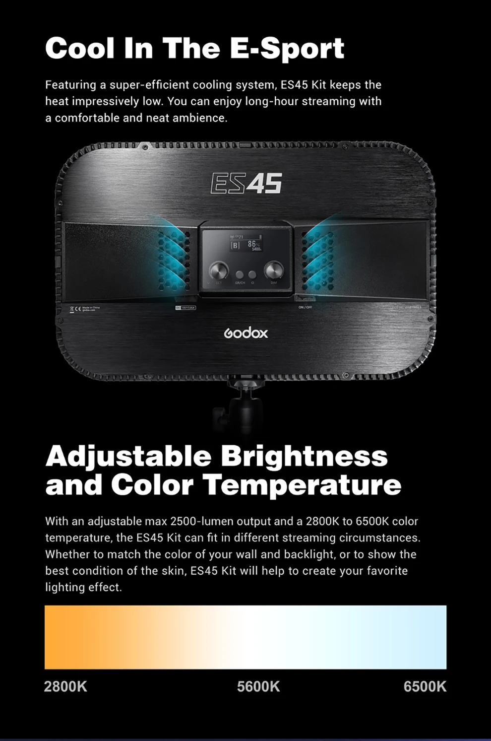 Отзывы о Godox E-Sports светодиодный светильник ES45 комплект 2800K-6500K монтажный стержень с