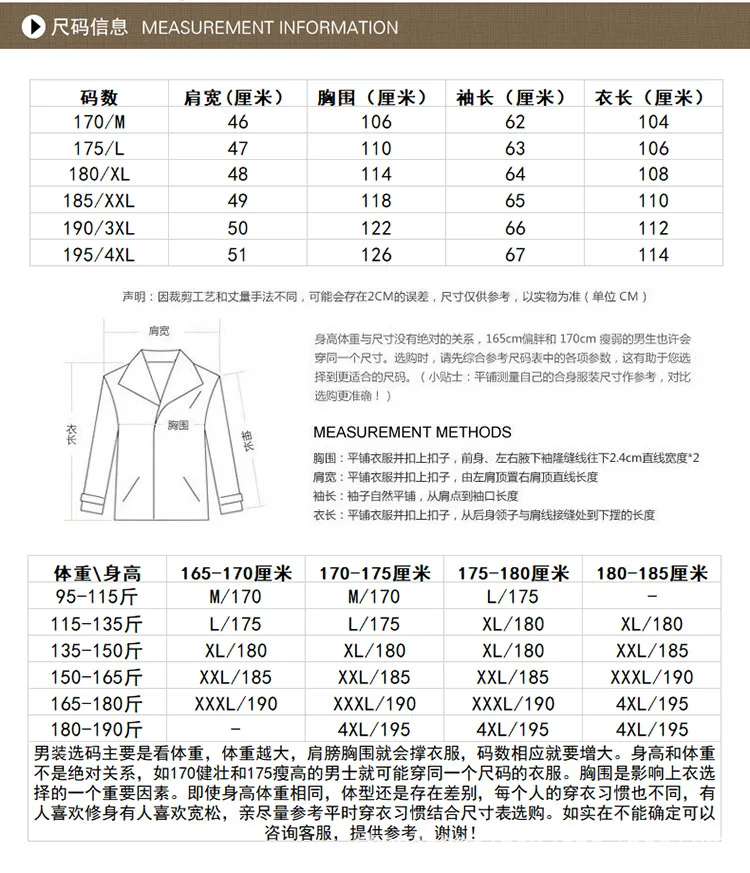Размер мужской одежды в основном основан на весе. Чем больше вес, тем поддерживаются плечи и бюст, и размер будет соответственно увеличиваться. Если вы тяжелые, рекомендуется выбирать одежду на один размер больше.