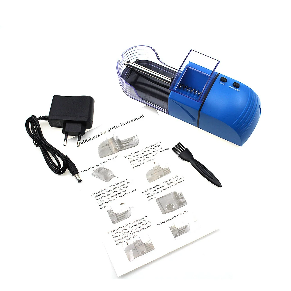 Особенности: 1.100% новый и высокое качество 2. Маленький, быстрый, прочный и долговечный, портативный размер, прост в эксплуатации и DIY 3. Съемный поднос для табака и изысканный обтекаемый дизайн 4. Закатайте сигарету самостоятельно, Экономьте время и Экономьте деньги. Наслаждайтесь нежным табаком в любое время 5. Эргономичная машина для завальцовки сигарет с противоскользящим основанием, вы можете делать сигареты даже в любом месте. Характеристики: Тип товара: электрическая автоматическая сигаретная машина Материал: металл + пластик Тип штепсельной вилки: адаптер штепсельной вилки европейского стандарта Цвет: красный/синий Напряжение: 100-240 В переменного тока Размер (Д * Ш * В): около 205*75*65 мм Длина дымовой трубы: около 78 мм Диаметр дымовой трубы: около 8 мм