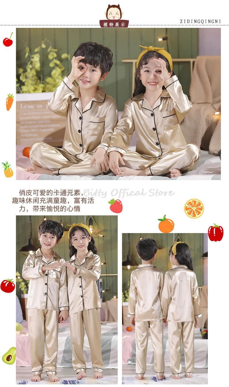 Отзывы о Шелковая пижама с длинным рукавом для девочек детская одежда сна пижамы и