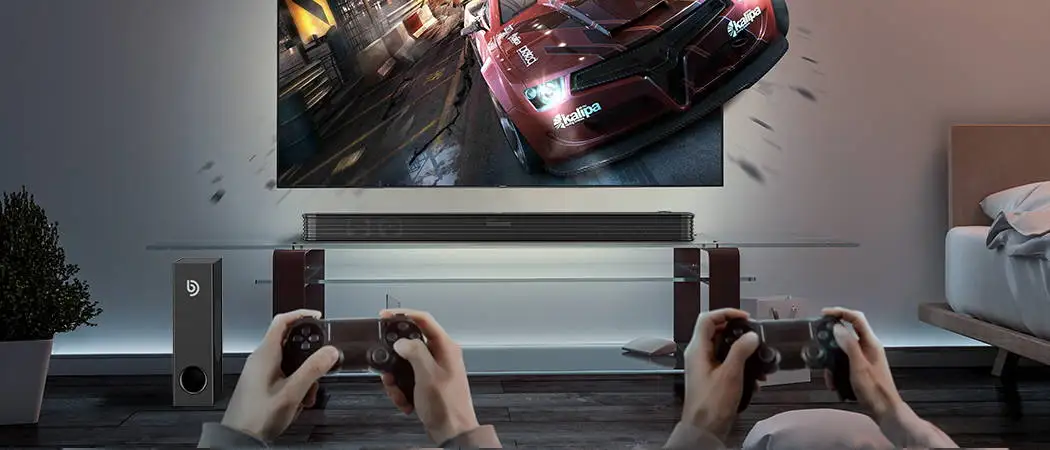 Для тщательного улучшения громкости звука, Саундбар Bomaker Njord I оснащен 5 мощными полнодиапазонными драйверами и 2 дополнительными трубками глубокого басового рефлектора, это в 2 раза более низкие басы и четкий уровень, чем раньше, решая проблему крошечного звука или недостатка басов.