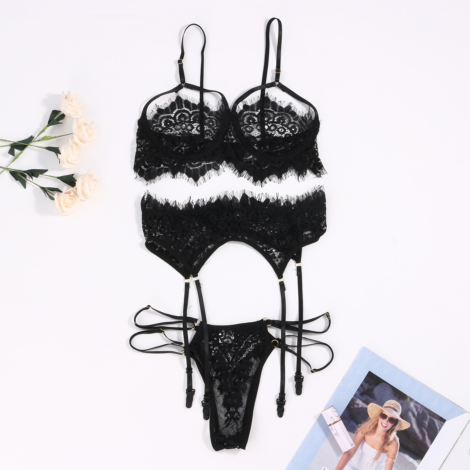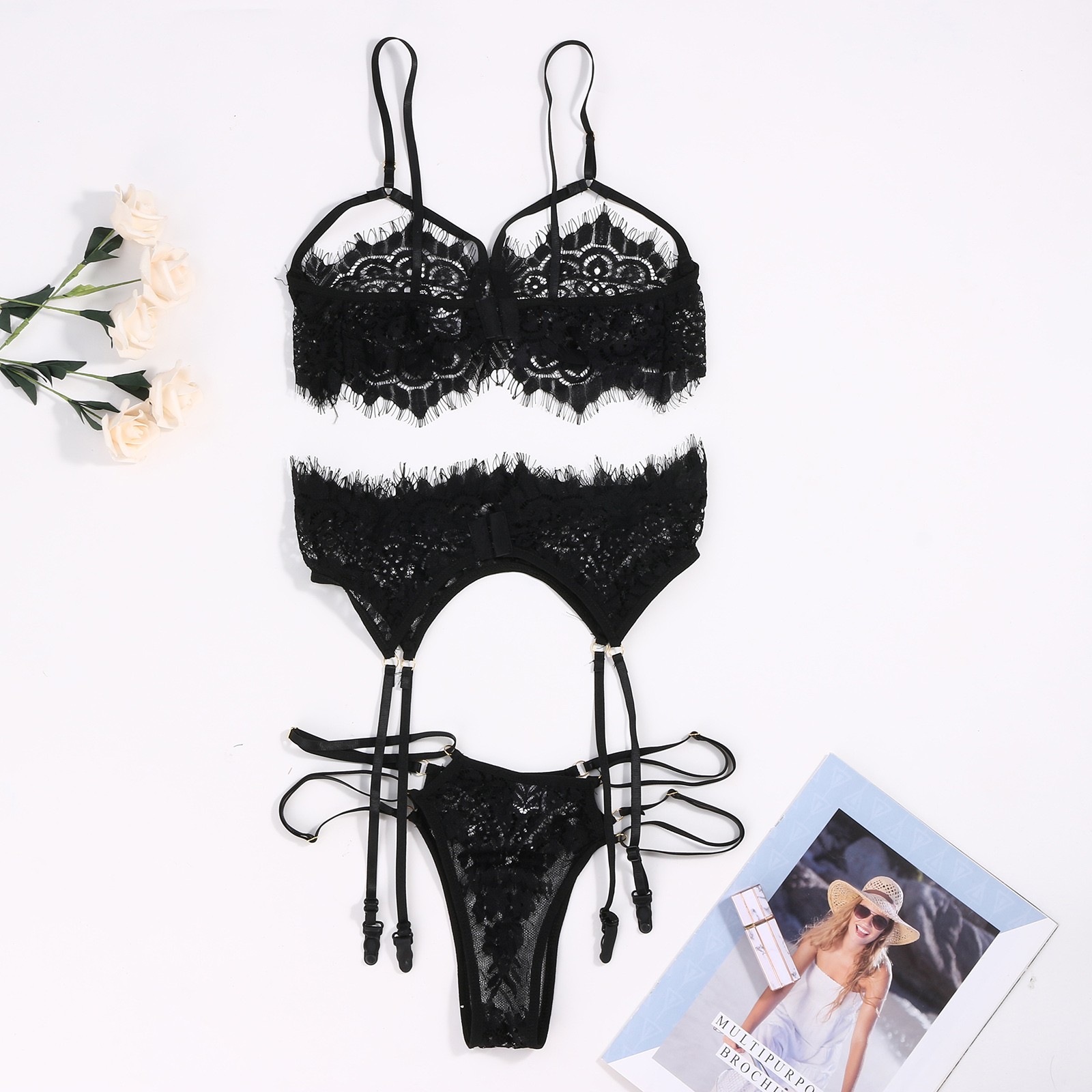 Вы получите:1 комплект пижам (1 бюстгальтер, 1 подвязка, 1 стринги)