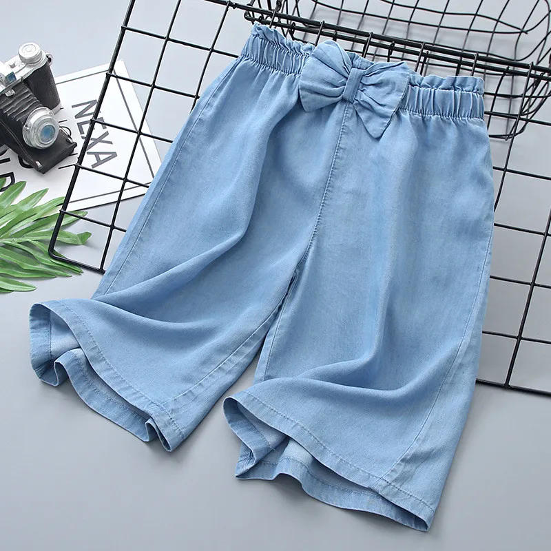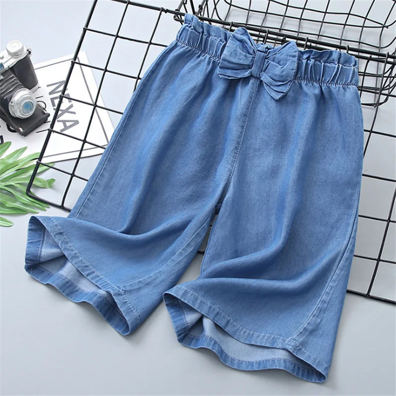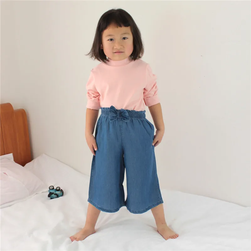Отзывы о Джинсы для девочек с бантом и широкими штанинами 2022 летние корейские легкие