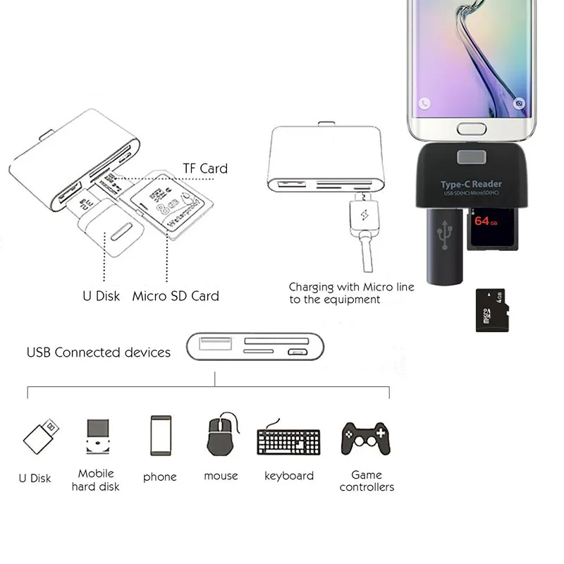 Отзывы о Многофункциональный Смарт 4 в 1Type C OTG кардридер Универсальный USB 3 1 с Micro зарядным