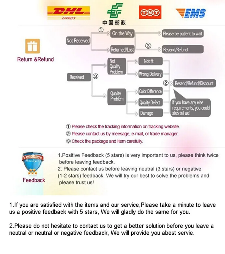 Пожалуйста, оставьте положительные отзывы и 5 звезд, если вы удовлетворены нашими товарами и услугами. Если у вас есть какие-либо проблемы с нашими товарами или услугами, пожалуйста, свяжитесь с нами. Мы сделаем все возможное, чтобы решить любые проблемы и предоставить Вам лучшее обслуживание клиентов.